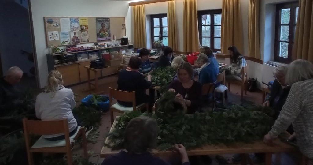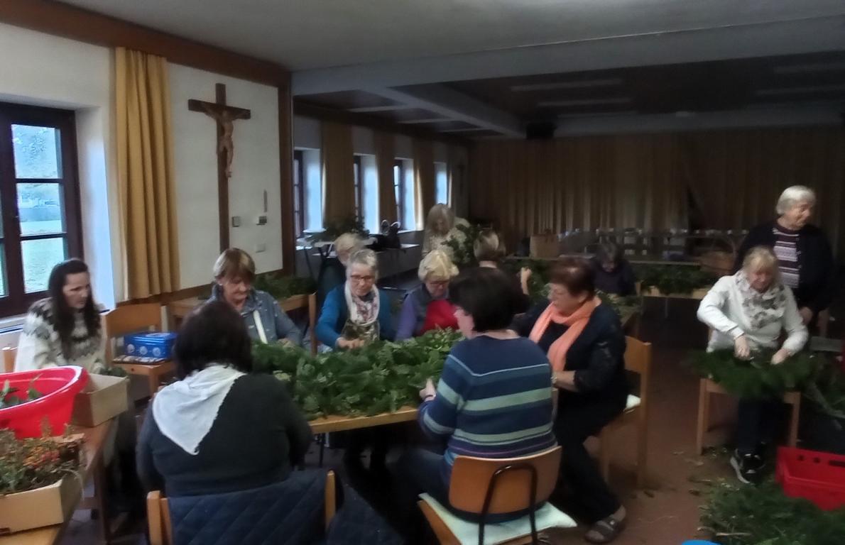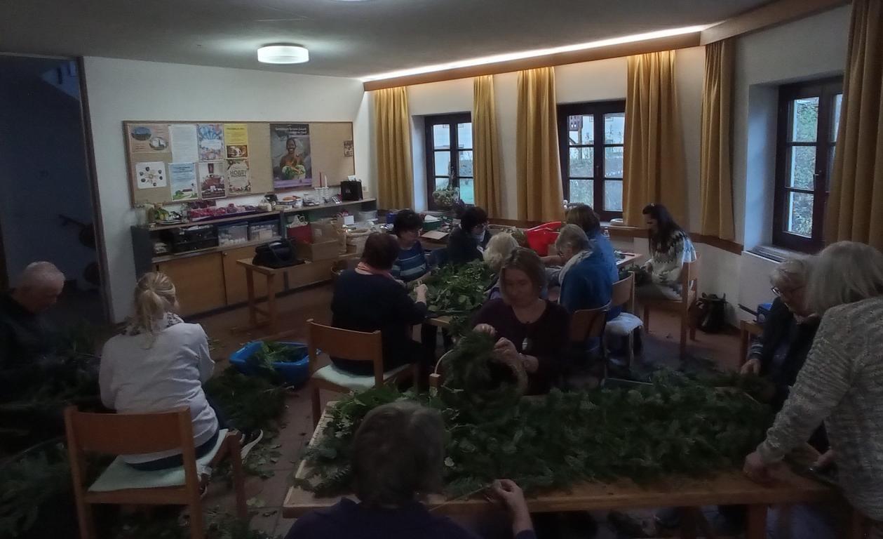 Frauen unserer Pfarre haben mehr als vierzehn Tag beim Adventkranzbinden und Kekse back fleissig für den Kathreinmarkt gearbeitet.