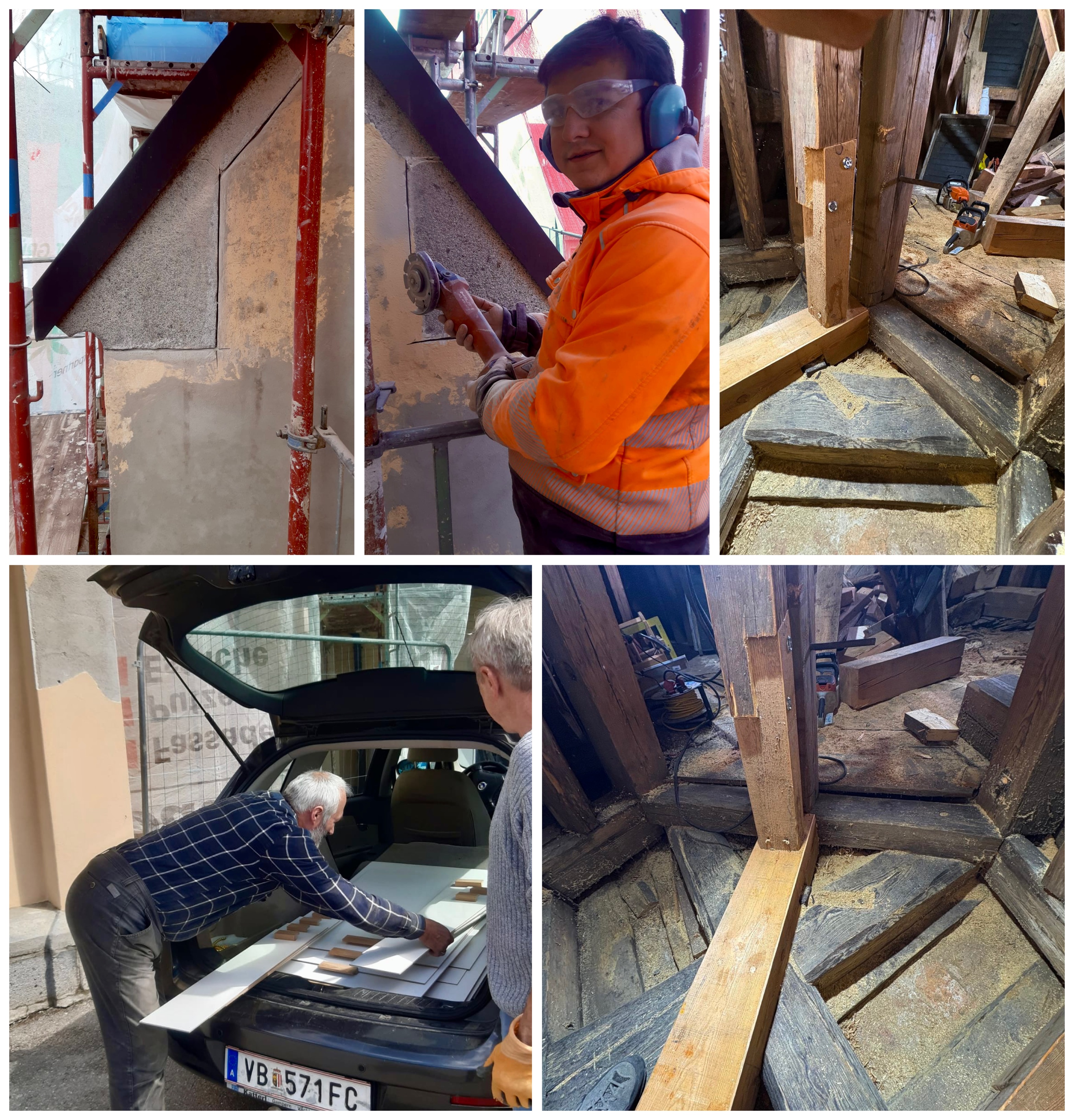 Nach einigen Besprechungen, Erstellung Bauzeitplan und Erhalt des Bescheides unseres Bundesdenkmalamtes (BDA) starteten wir ab Osterdienstag (18.4.) mit dem Gerüstaufbau. Fast alle Firmen wurden im Vorfeld beauftragt und begannen wie eingeteilt. Wir werden die Ursprungsfarben wiederherstellen. Herzlichen Dank an Diözesanbauleiter Günther Grundner für seine Unterstützung.
