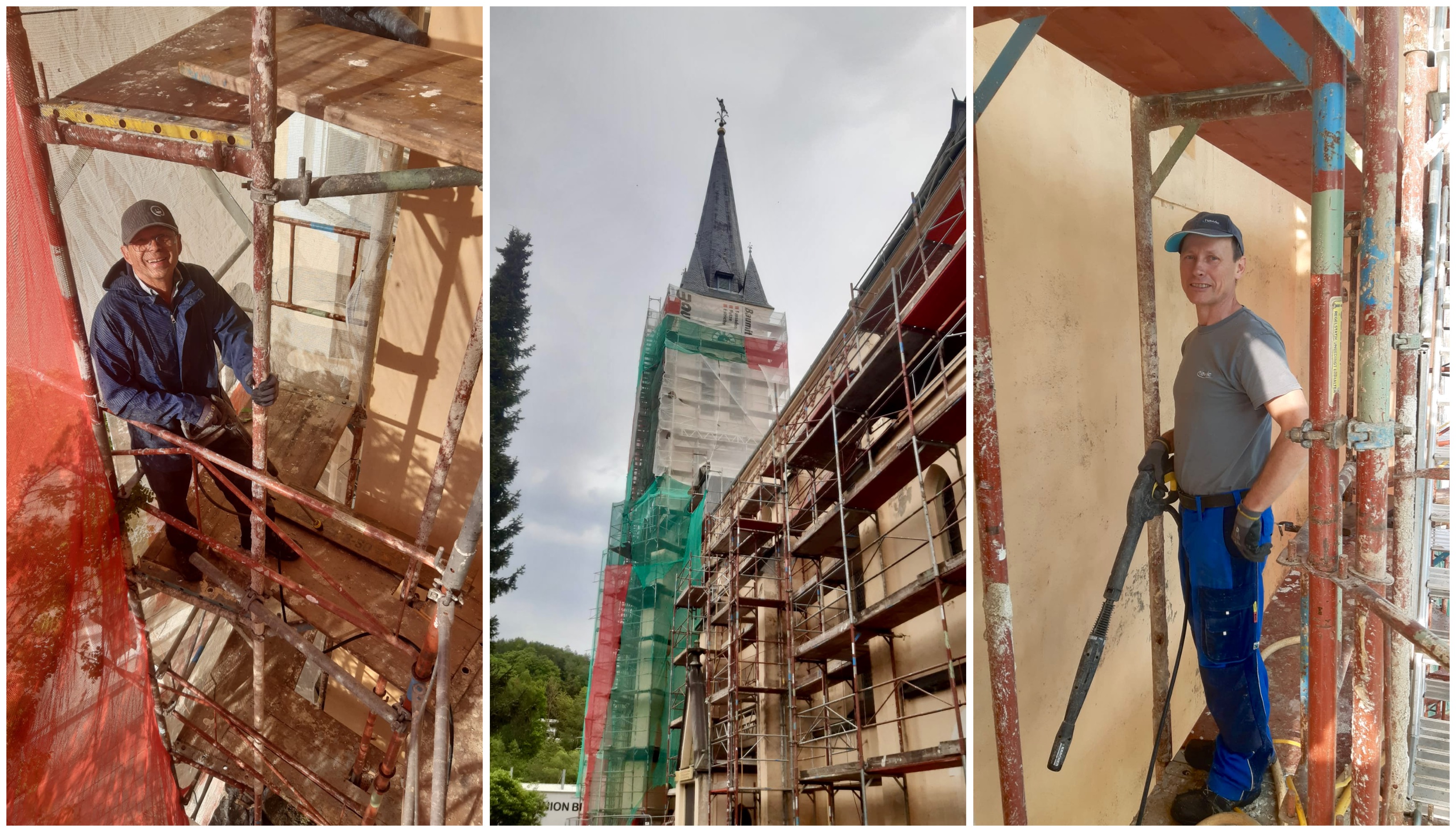 Unsere Renovierung ist fast abgeschlossen. Nach Gerüstumstellung Anfang Juli wurde auch pfarrgartenseitig wieder fleißig gearbeitet.