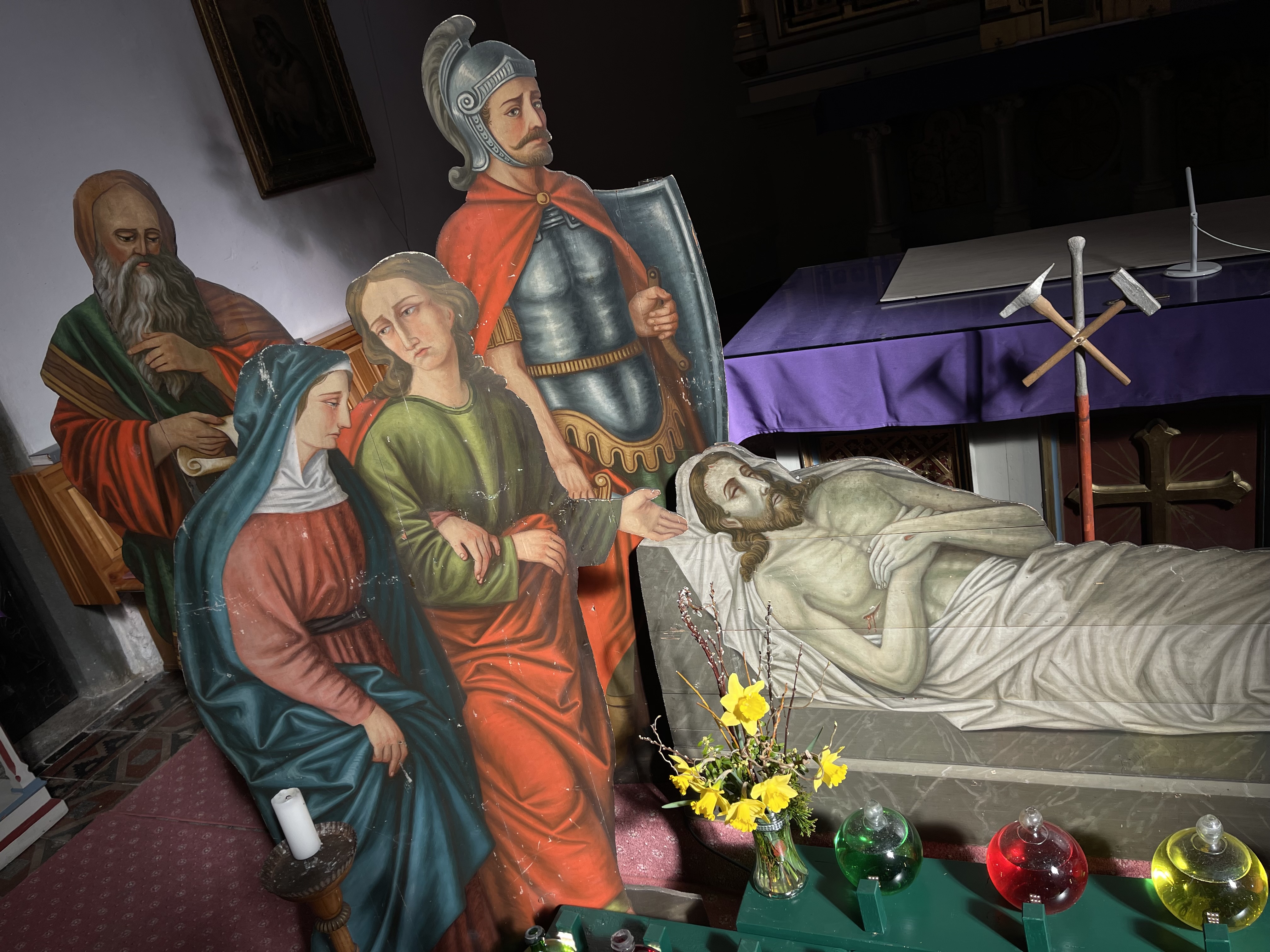 Ab Gründonnerstag ist auch das historische Heilige Grab (19.Jh), das Tiroler Franziskaner nach Bruckmühl gebracht haben, wieder im Chorraum aufgestellt. Die Liturgie des Karfreitag um 19 Uhr mit Pfarrer em. Konrad Enzenhofer wird von der Kantorei Bruckmühl feierlich mitgestaltet.