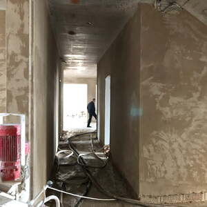 neuer Glasvorbau beim Haupteingang und Innenverputzung des Gebäudes