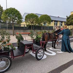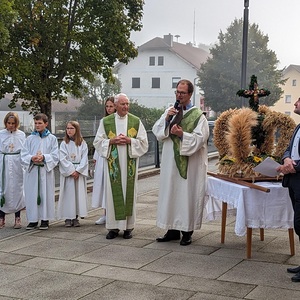 Im Anschluss an die Segnung der Erntekrone bei der Volksschule ging es in einem bunten Festzug bei herrlichem Spätsommerwetter zur Kirche.