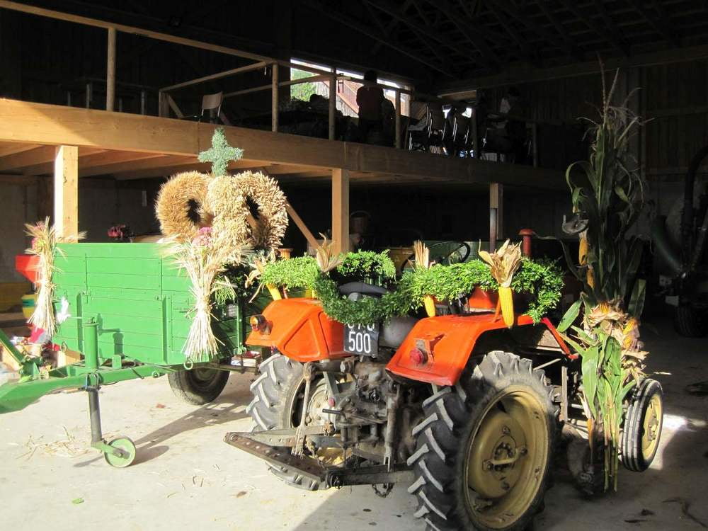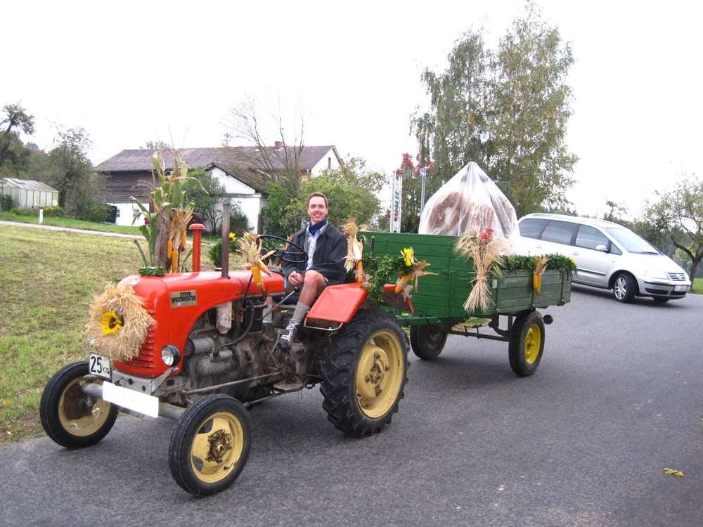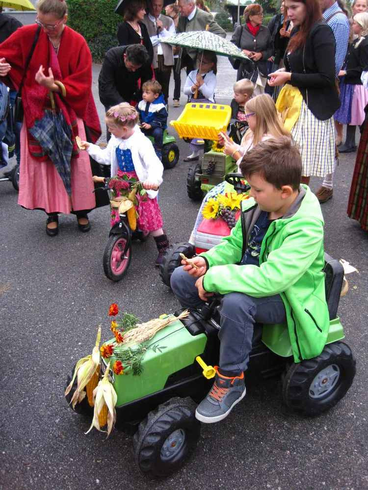 Mit vielen guten Ideen und vor allem mit der ganz besonderen Einladung an die Kinder, dass sie mit ihren "Erntewagen" am Fest teilnehmen, wurde eifrig überlegt, gebastelt, dekoriert, usw. Trotz der schlechten Wetterprognose kamen viele Leute, um mit uns zu feiern und Gott für die Ernte des vergangenen Jahres zu danken. Wir hatten Glück, es begann erst zu regnen, als wir schon in der Kirche waren. Beim Gottesdienst waren vor allem die Kinder ganz eifrig bei der Sache...