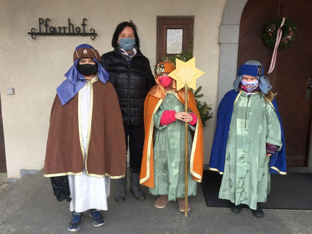 Unter diesem Motto machten sich 11 Gruppen von Königen und Königinnen mit ihren Begleiter*innen auf den Weg, um den Menschen in unserer Pfarre den Weihnachtssegen zu bringen und um die heuer besonders benötigten Spenden für die Projekte der Dreikönigsaktion zu bitten. Trotz der Einschränkungen, die heuer nöig waren, um den Besuch sicher zu gestalten, waren die Kinder und Erwachsenen mit großer Begeisterung dabei, und trotz der vielen Haushalte, die besucht werden mussten, war am Schluss von vielen zu hören: wieso können wir nicht noch länger Sternsingen? Was heuer besonders auffallend war: Wir wurden von sehr vielen sehr freundlich empfangen, viele freuten sich wirklich aufrichtig, dass wir zu ihnen gekommen sind. Das machte sich auch bei den Spenden bemerkbar. Die stolze Summe von 6500 € haben wir noch nie bei einer Sternsingeraktion zusammengebracht. Deshalb unser großes DANKE an alle, die bei der Organisation (die heuer sehr rasch durchgeführt werden musste) und bei der Durchführung mitgeholfen haben! Die Freude und die Dankbarkeit,die wir erlebt haben, haben gezeigt, dass es die Entscheidung, die Sternsingeraktion in unserer Pfarre durchzuführen, richtig war.