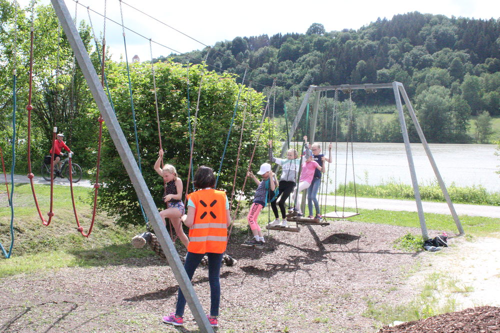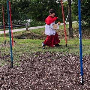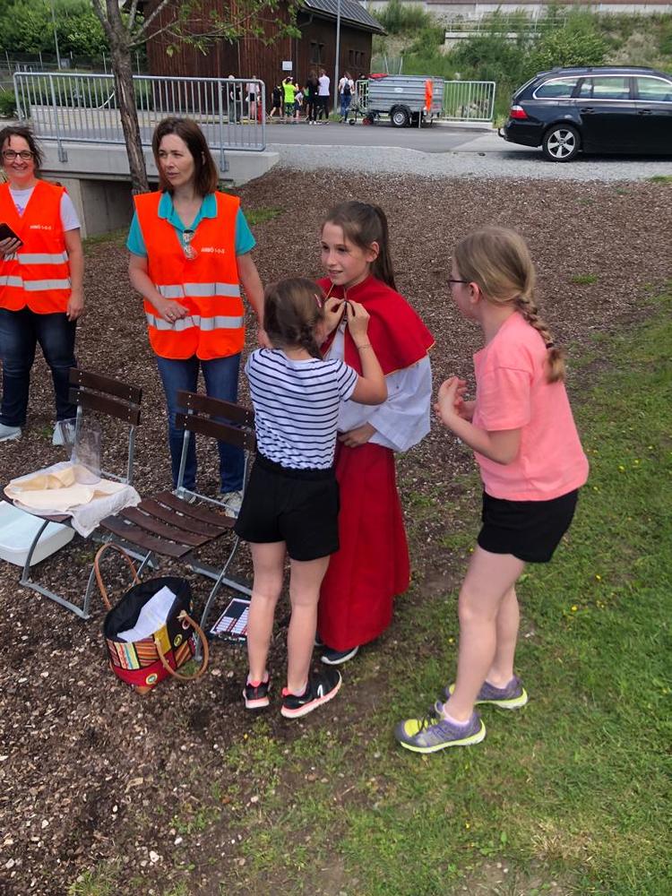 In kleinen Gruppen absolvierten die Minis insgesamt 15 Stationen vom Wassertransport im Ministrantengewand über Weihrauchkohlenparcour zum Entenfischen am Inn.