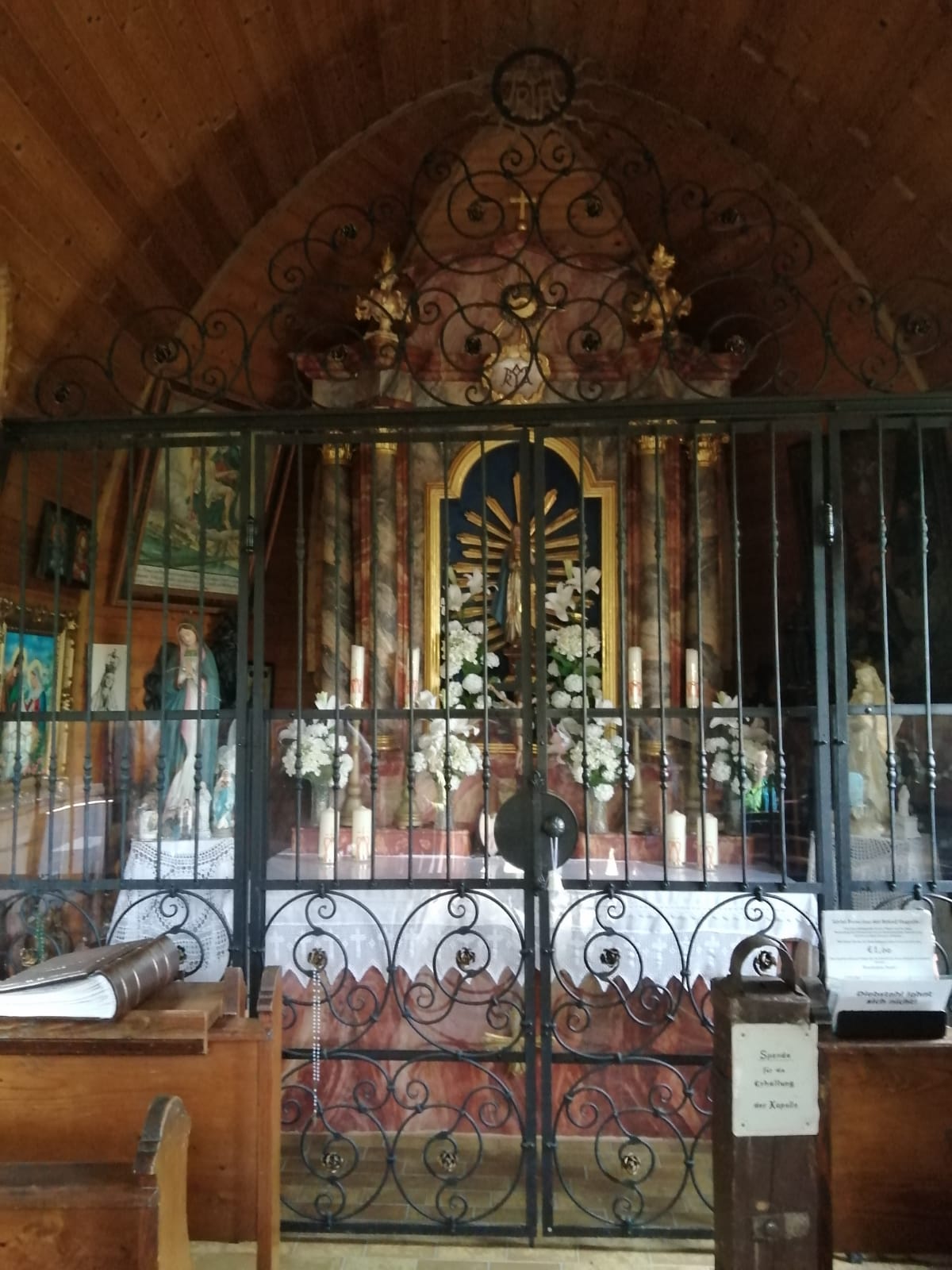 In der Kapelle sangen wir zur Ehre der Gottesmutter das Lied: “Segne du Maria“. Seelisch gestärkt ging die Fahrt weiter nach Reichersberg mit Einkehr und Mittagessen im Stiftsgasthaus . Gut gestärkt ging es wieder heimwärts, wo uns nach halber Strecke Regen überraschte, der ja für Wiesen, Felder und Wälder sehr gut ist, und „wir sind ja nicht aus Zucker“ sagt ein altes Sprichwort. Gottseidank.