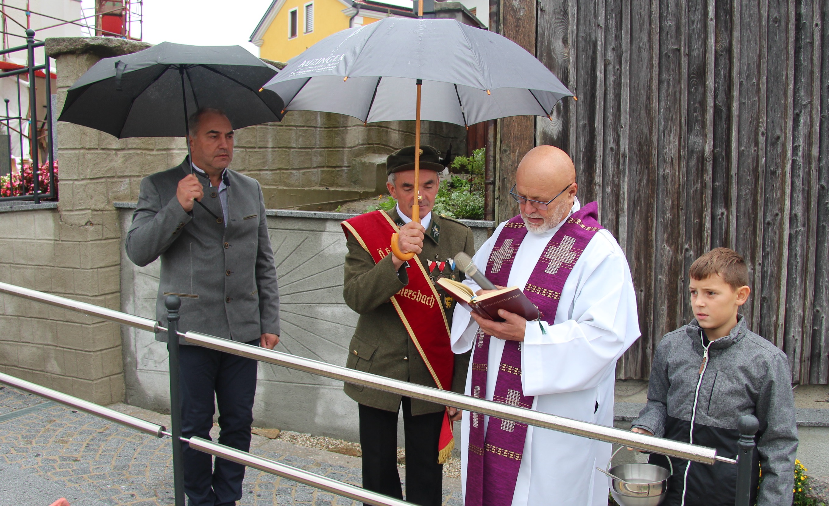 Nach den einleitenden Grußworten der beiden Geschäftsführer, Anton Ertl und Johann Fuchs (BÜRGERMEISTER) wurde der Friedhof mit dem feierlichen Segen von Pfarrer Thaddäus Kret seiner Bestimmung übergeben.