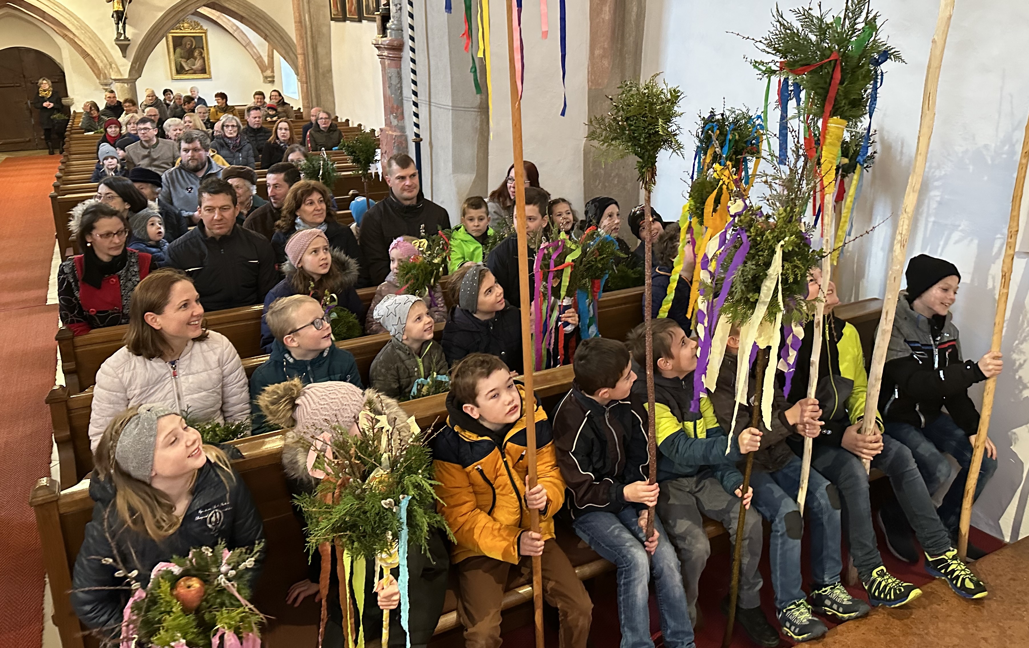 Pfarrer Thaddäus konnte sich trotzdem über eine übervolle Kirche freuen. Bei einer so großen Anzahl Besuchern wäre es toll wenn jeden Sonntag Palmsonntag wäre :-))