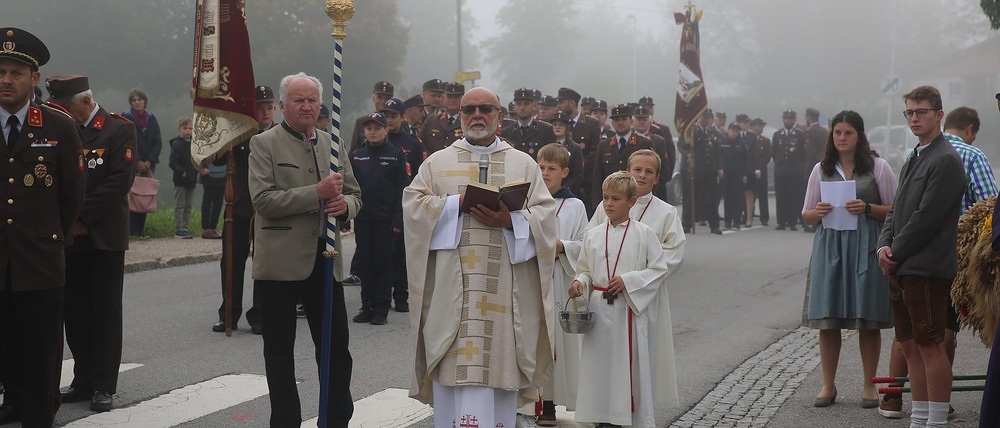 Am Sonntag 1.10.2023 lud die Pfarre Diersbach alle Gemeindebürgerinnen und Bürger zur Feier des gemeinsamen Erntedankfestes mit Gottesdienst in der Kirche. Treffpunkt war für alle das Gemeindeplatz Diersbach . Die Landjugend hatte wieder eine Wunderschöne Erntekrone gebunden, die vor dem Festzug auch durch Pfarrer Thaddäus geweiht wurde. Die musikalische Begleitung des Erntedankfestes übernahm die Musikkapelle Diersbach . Auch eine große Abordnung der Golddhauben Diersbach, Kameradschaftsbund , Feuerwehr und eine große Schar an Schuller und Kindergartenkinder hatten sich eingefunden.