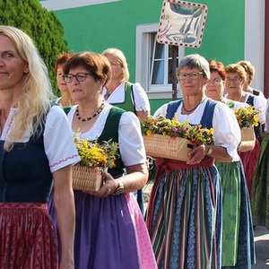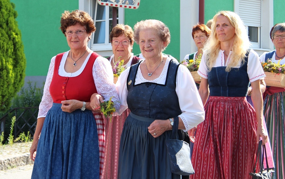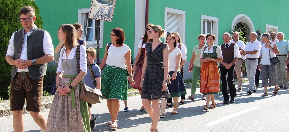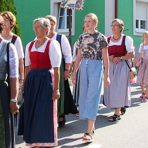 Es war ein im wahrsten Sinne des Wortes glänzendes Fest: Festlich mit Kirchenzug, Gottesdienst, Festzug, und einem gemeinsamen Mahl. In einem langen, farbenfrohen Festzug ging es dann mit flotter Musik der Diersbacher Musikanten zum Turnsaal.