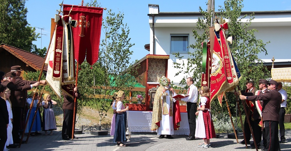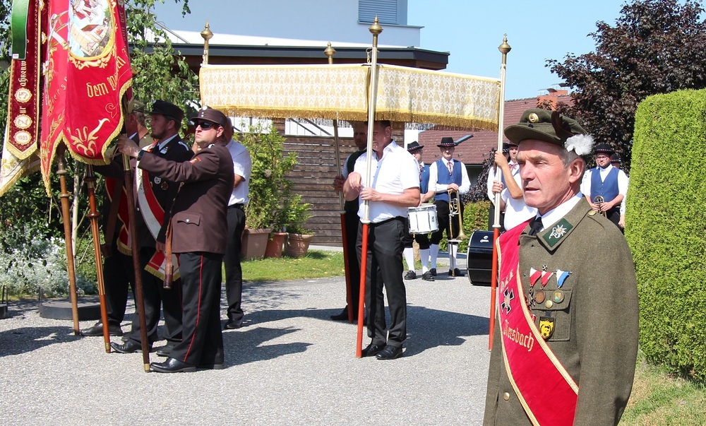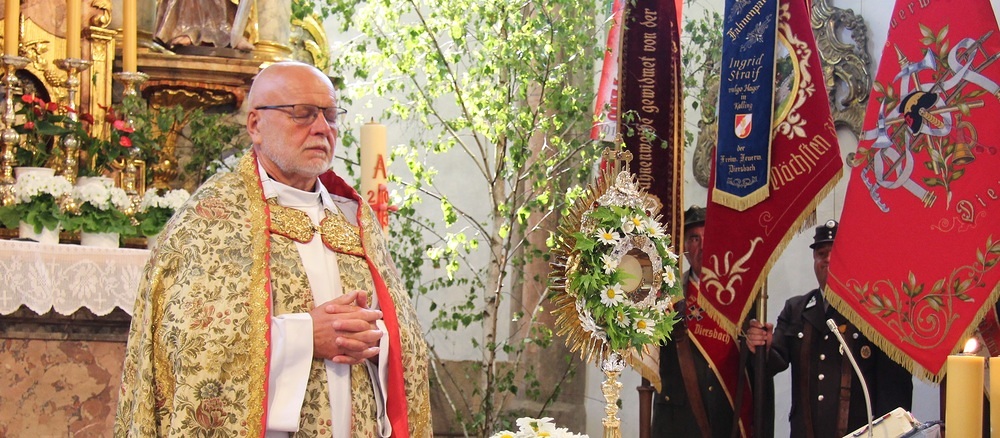 Die alte Feuerwehrfahne der FF Diersbach feiert heuer ihren 100. Geburtstag! Heute bei der Fronleichnamsprozession bzw. Fronleichnamsmesse ist dafür ein würdiger Rahmen, um der Fahne der FF Diersbach aus dem Jahr 1923 die Segnung zu geben.