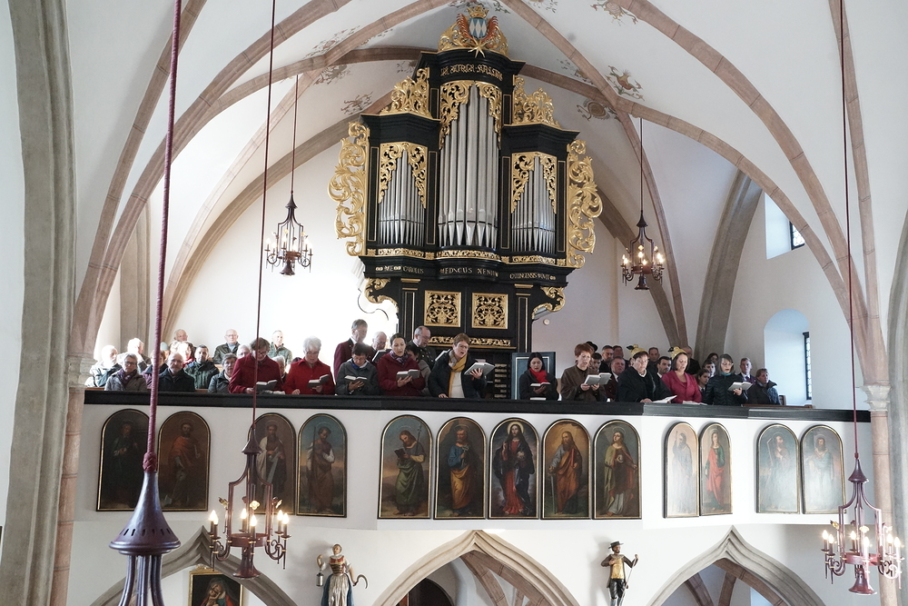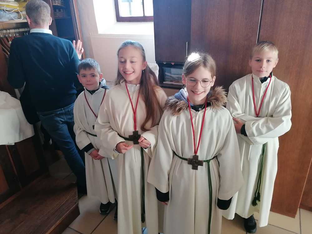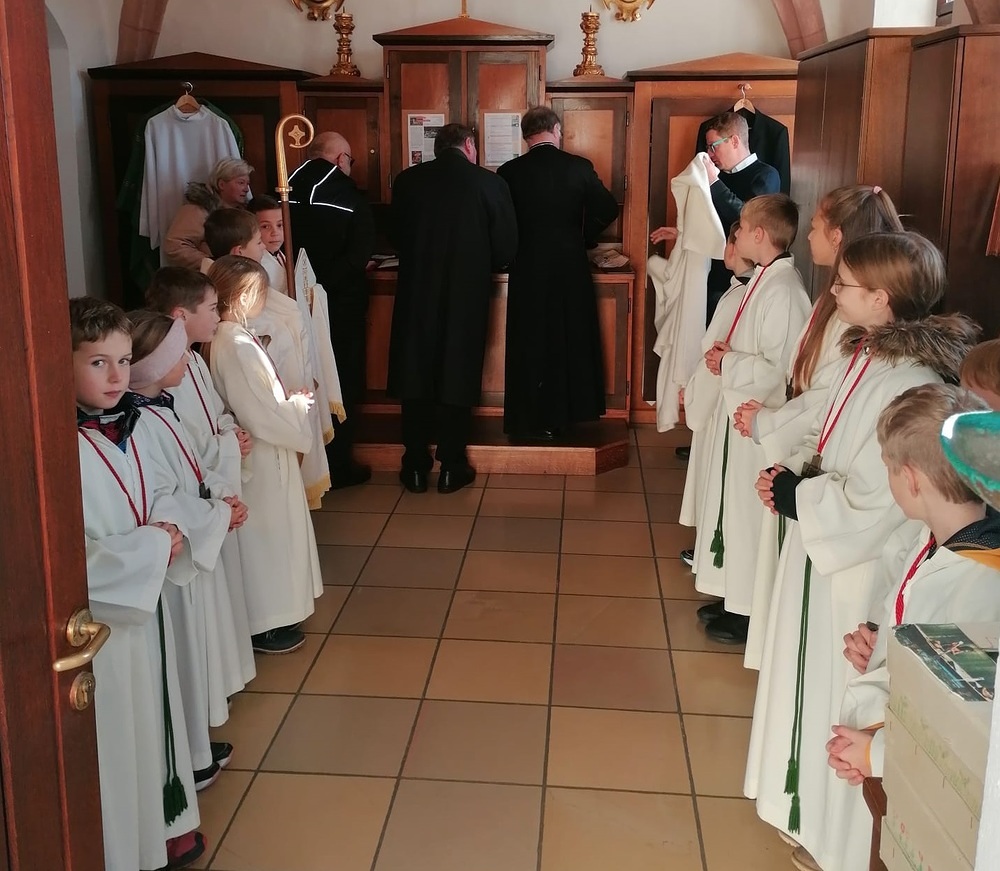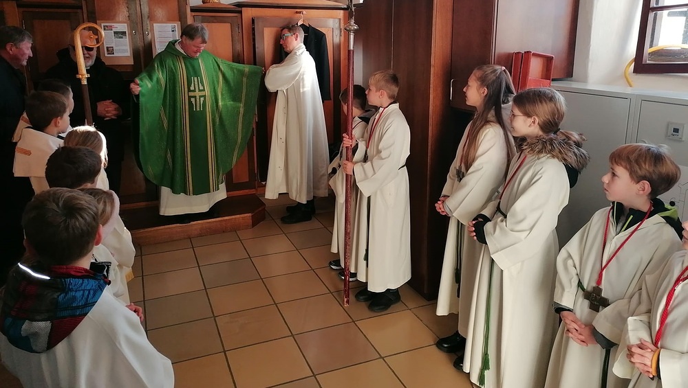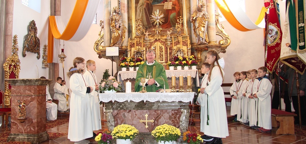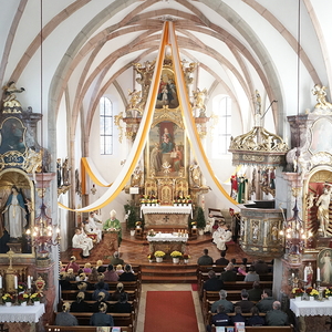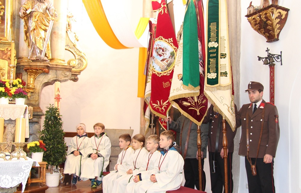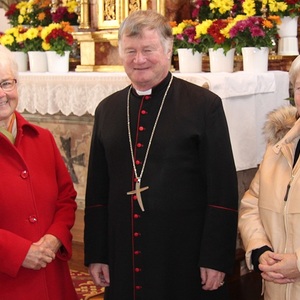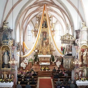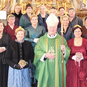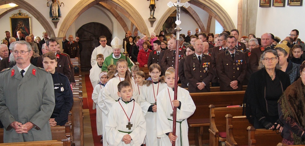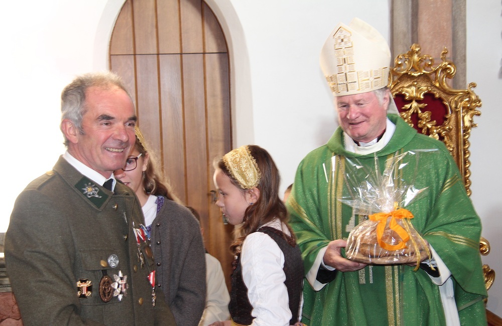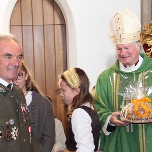 Scheuer wurde vor dem Gottesdienst bei noch schönem Wetter auf dem Marktplatz herzlich empfangen. Pfarrer Thaddäus Kret ,Pfarrgemeinderats-Obmann Anton Ertl und Bürgermeister Johann Fuschs hießen den Diözesanbischof herzlich willkommen. Die Musikkapelle Diersbach überbrachte einen musikalischen Gruß. Auch die Mitglieder vieler örtlicher Vereine, unter anderem der Goldhaubenfrauen, nahmen am Empfang teil, ebenso zahlreiche Pfarrmitglieder.