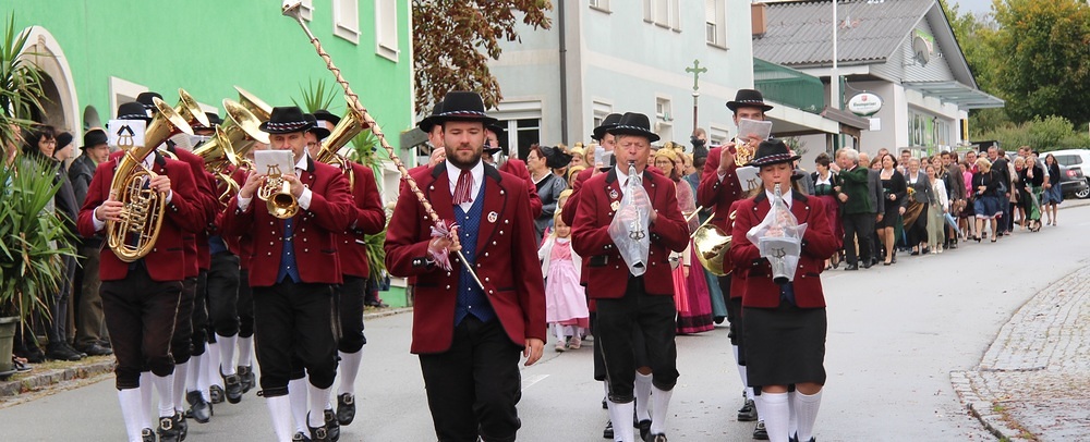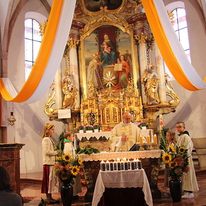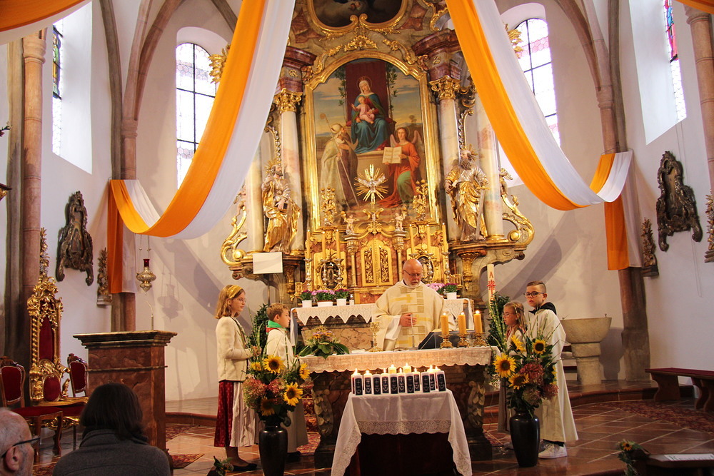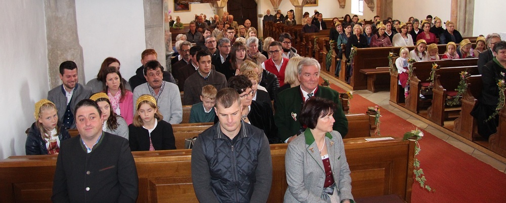 Unter der musikalischen Begleitung der Musikkapelle zogen wir in die schön geschmückte Pfarrkirche ein.