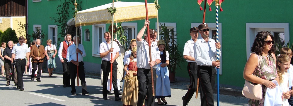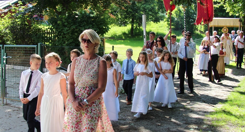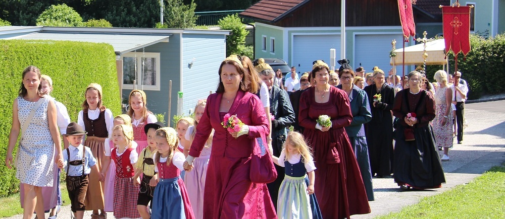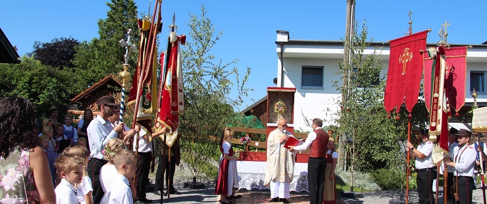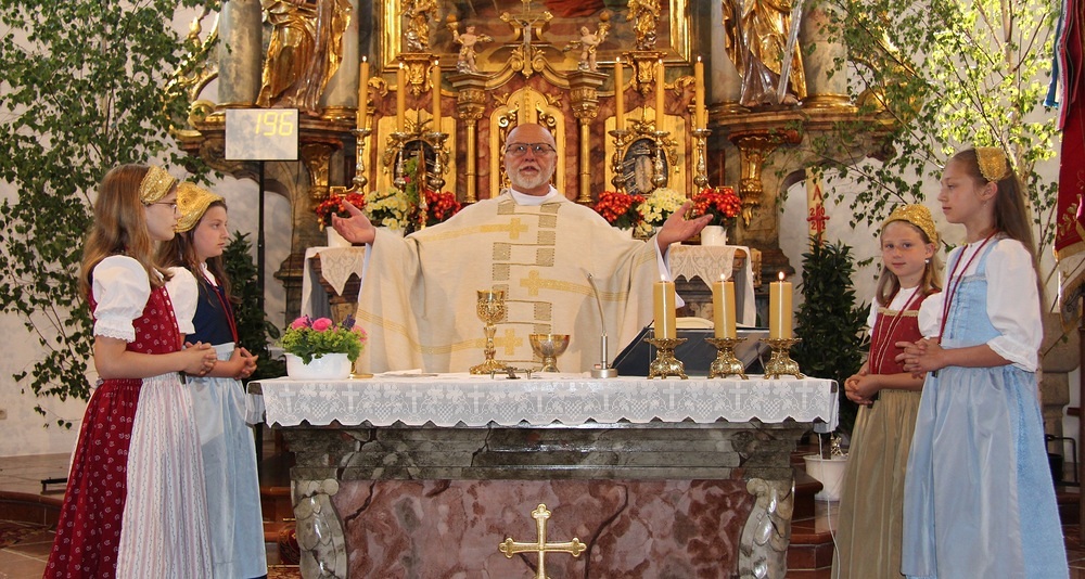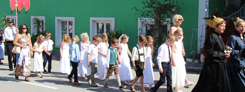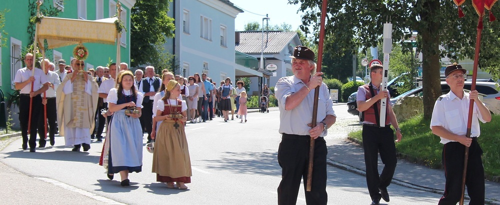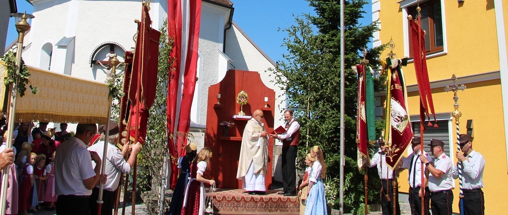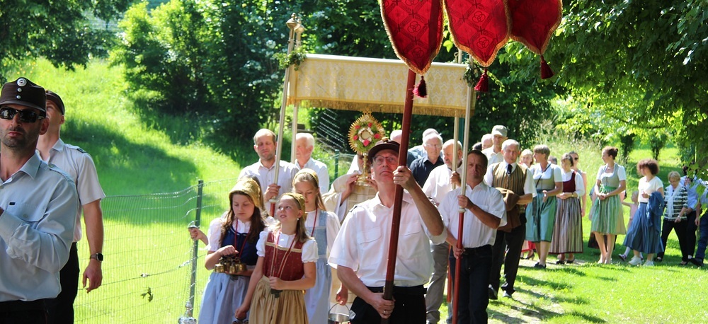 BROT VOM HIMMEL hast du uns gegeben! Bei Sonnenschein durften wir heute Fronleichnam feiern, ganz bewusst an einem Sonntag , um an das Abendmahlgeschehen des Gründonnerstags zu erinnern! Viele, viele Kinder, Jugendliche, Familien und Vereine begleiteten Jesus im Heiligen Altarsakrament durch die Wegerl, Gassen und Straßen unseres Heimatsdorf Diersbach ! Danke für dieses Glaubensfest!