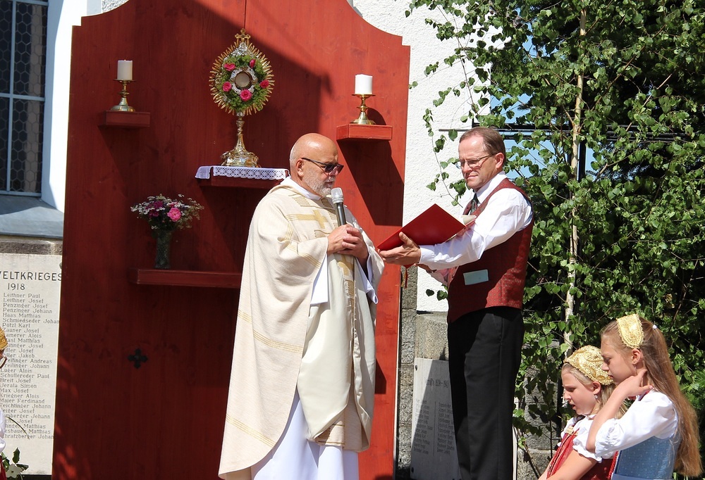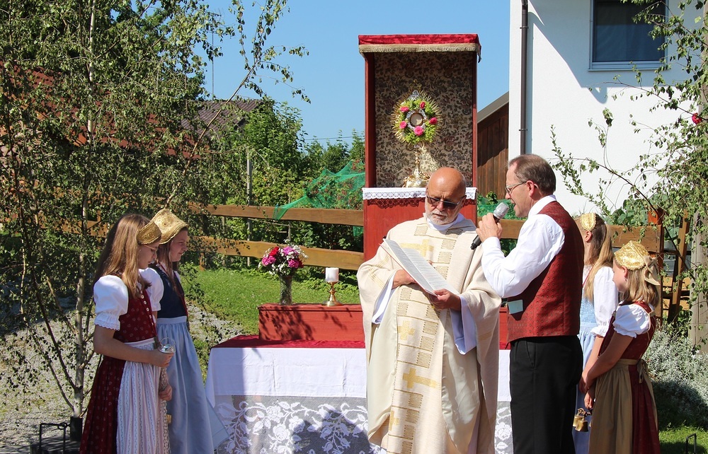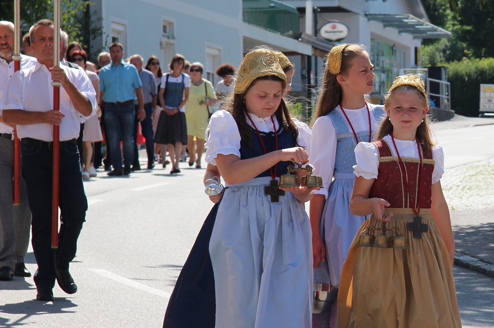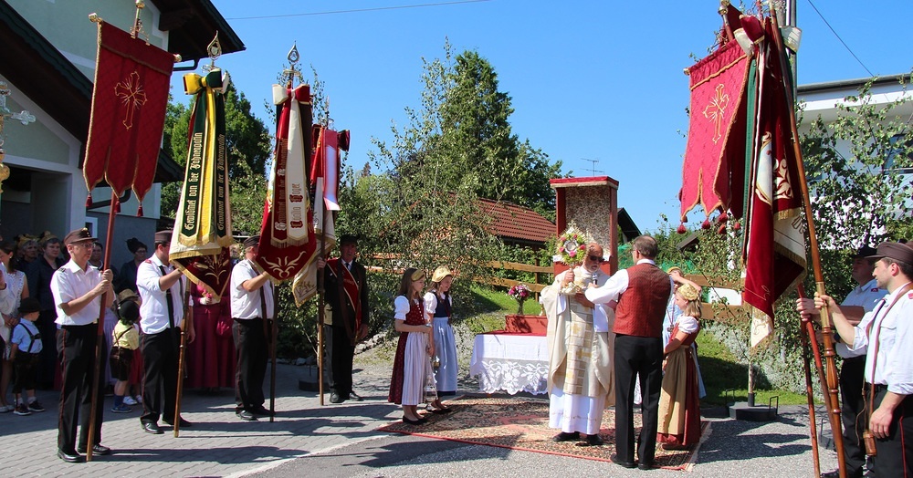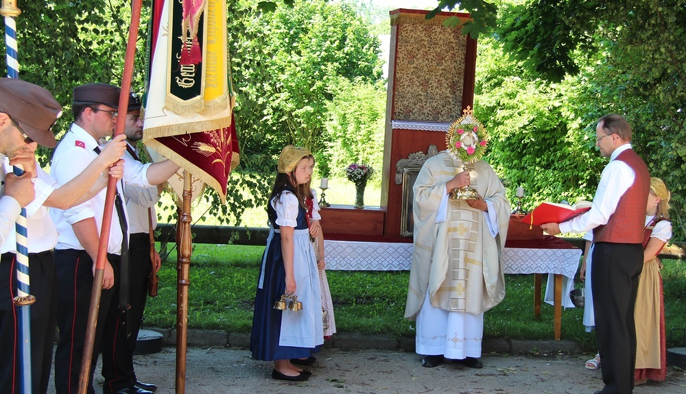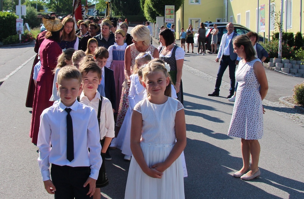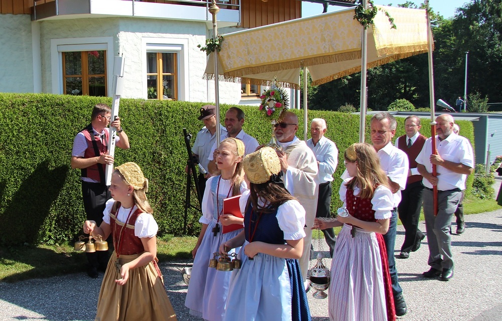BROT VOM HIMMEL hast du uns gegeben! Bei Sonnenschein durften wir heute Fronleichnam feiern, ganz bewusst an einem Sonntag , um an das Abendmahlgeschehen des Gründonnerstags zu erinnern! Viele, viele Kinder, Jugendliche, Familien und Vereine begleiteten Jesus im Heiligen Altarsakrament durch die Wegerl, Gassen und Straßen unseres Heimatsdorf Diersbach ! Danke für dieses Glaubensfest!