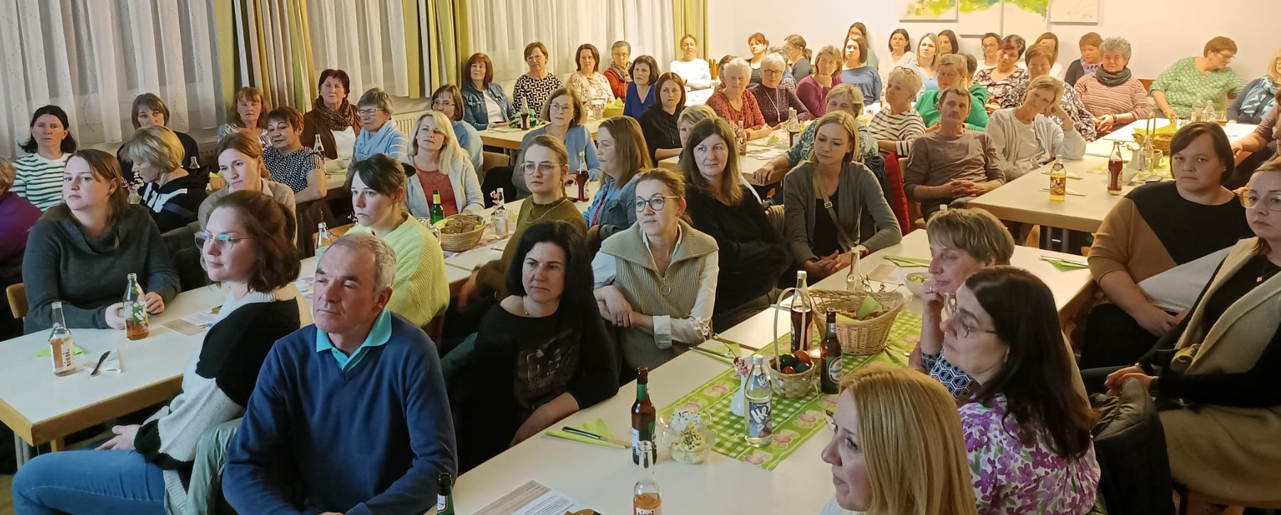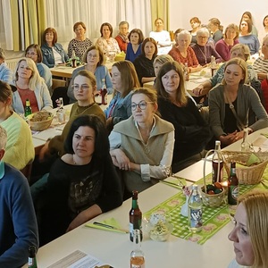 Am 25.3 durften wir uns über einen Saal voller Gäste erfreuen. Diese folgten aufmerksam dem Vortrag von Maria Schild und der Sängerin Katharina Bauböck.