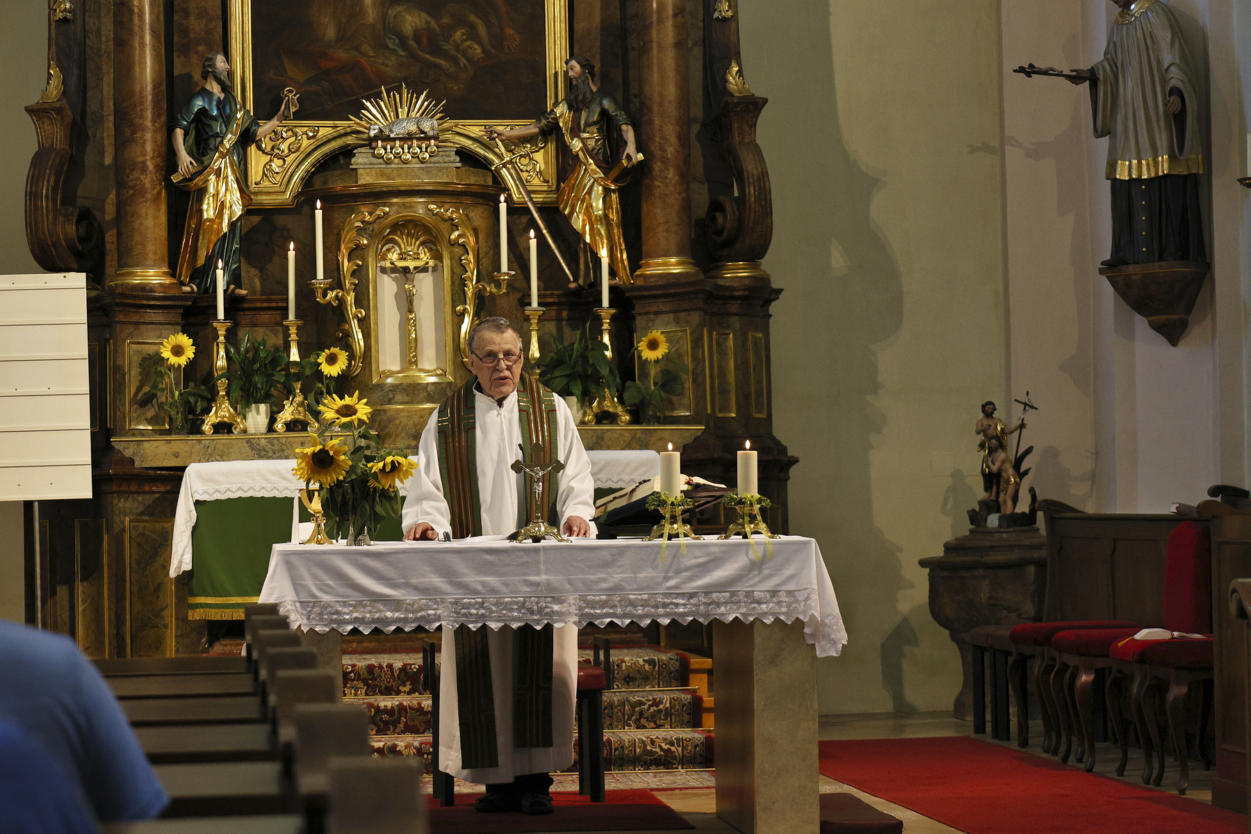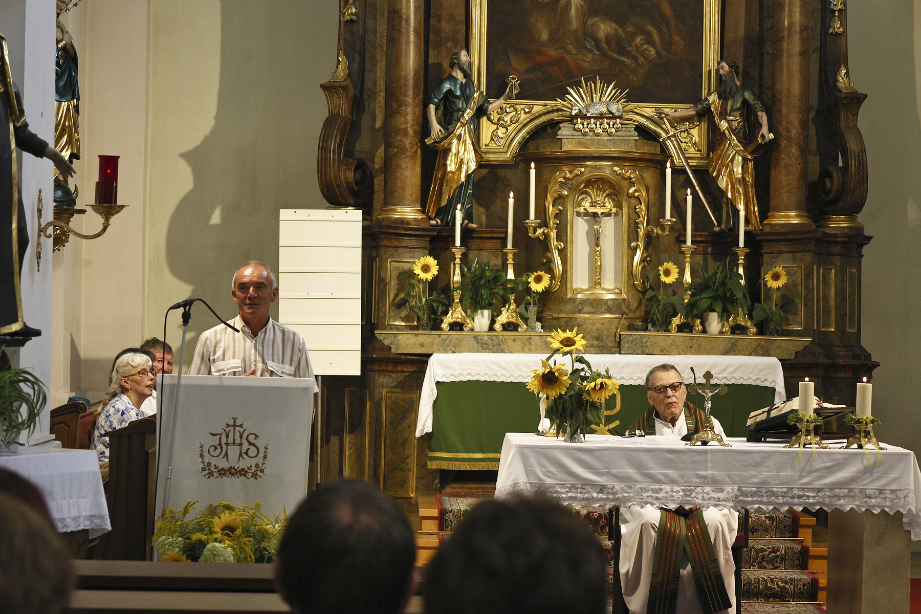 Nach der Hl. Messe erzählten uns der PGR-Obmann und die Messnerin die Geschichte über die Pfarrkirche von Lehen.