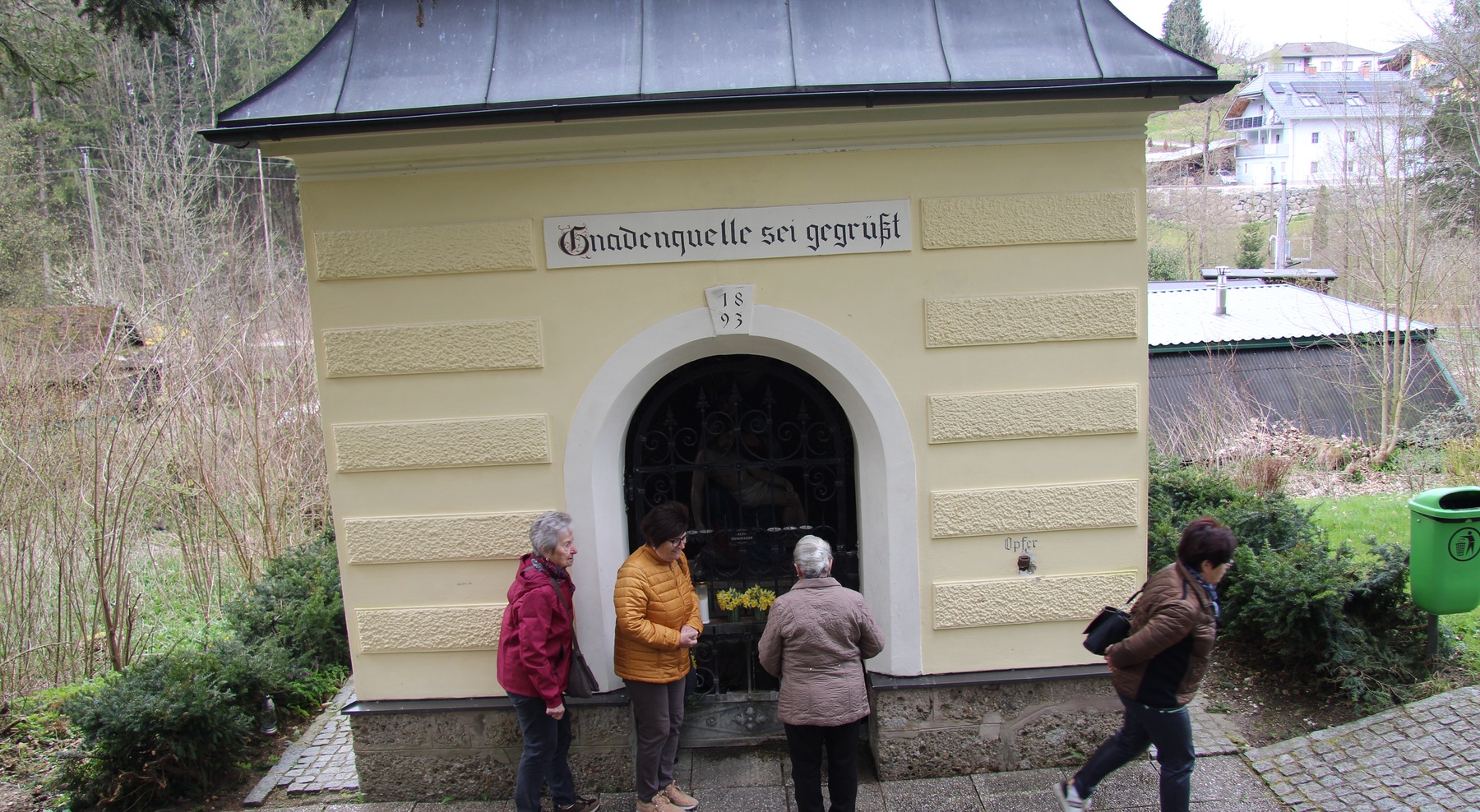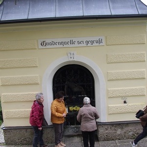 Natürlich besuchten wir die Kapelle beim Gnadenbrünnlein. Bis heute ist das Ziel vieler Gläubiger, die sich auf die Fürsprache der Gottesmutter durch das Waschen der Augen mit dem radonhaltigen Wasser eine Erhaltung oder Verbesserung der Sehkraft erbitten.