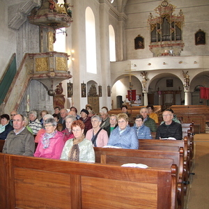 Nach der Heiligen Messe konnten wir über die Kirchengeschichte, über die durchgeführten Wallfahrten und Pilger und über die Geschichte des Gnadenbrünnleins so manches Interessante durch den Organisten und Archivar erfahren.