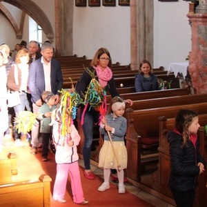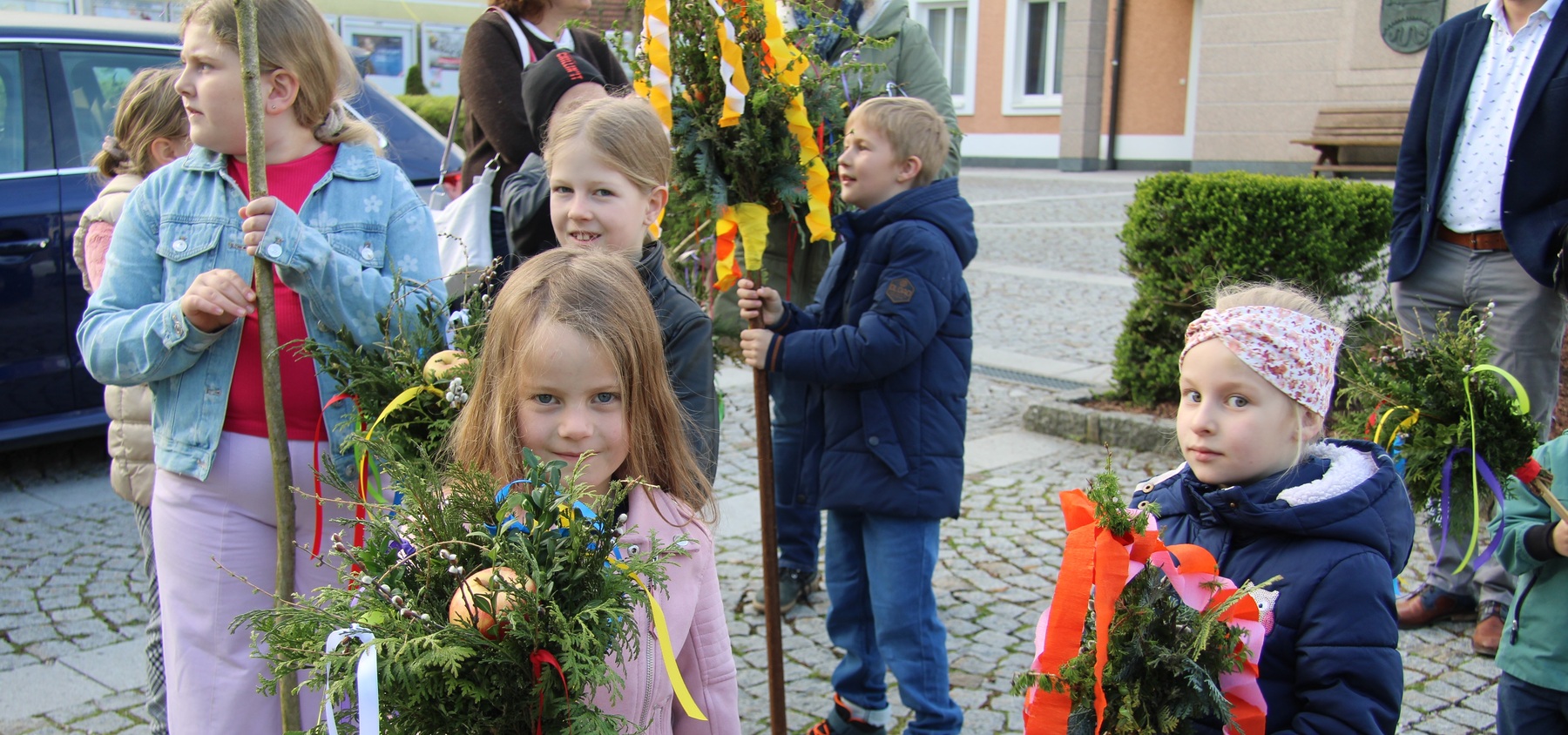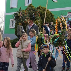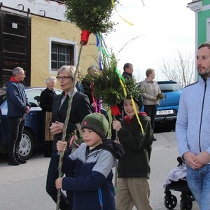 Jesus zieht auf einem Esel in Jerusalem ein und wird von den Menschen wie ein König geehrt. In Erinnerung daran zog unsere Pfarrgemeinde auch heuer wieder in einer feierlichen Prozession von der Gemeindeplatz zur Pfarrkirche, wo eine feierliche Messe stattfand.