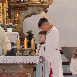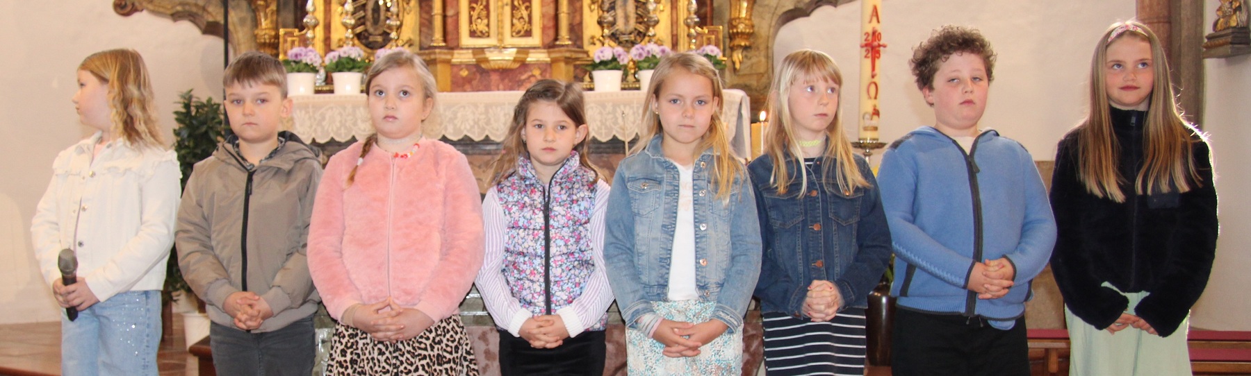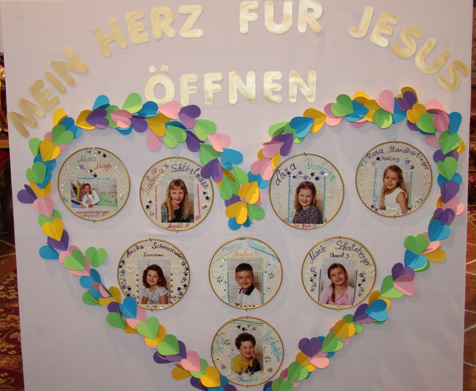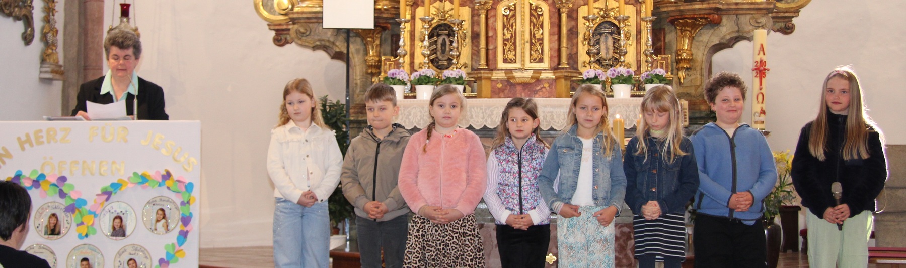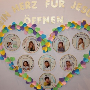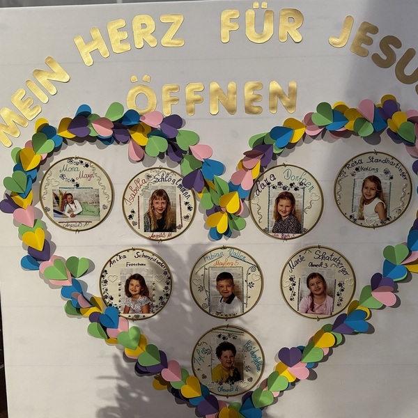 In diesem Jahr bereiten sich 8 Kinder auf den Empfang der ersten heiligen Kommunion vor. Das Thema für ihre Erstkommunion lautet: „ Mein Herz für Jesus öffnen ". Die Kinder haben sich überlegt, wo sie dies in ihrem Leben bereits erfahren haben. „Jesus hat ein Herz für mich, wenn ich traurig bin und Aufmunterung brauche".