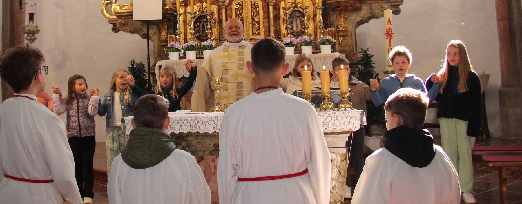 Am 27.April ,2025 wurden die diesjährigen Erstkommunionkinder der Pfarrgemeinde vorgestellt. Die Gemeinschaftskerzen, die in den ersten Tischrunden gestaltet wurden, fanden ihren Platz auf dem Altar.