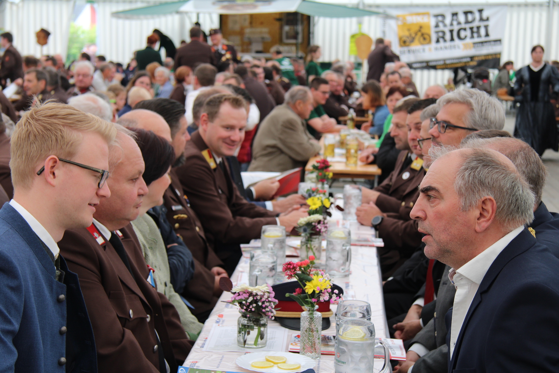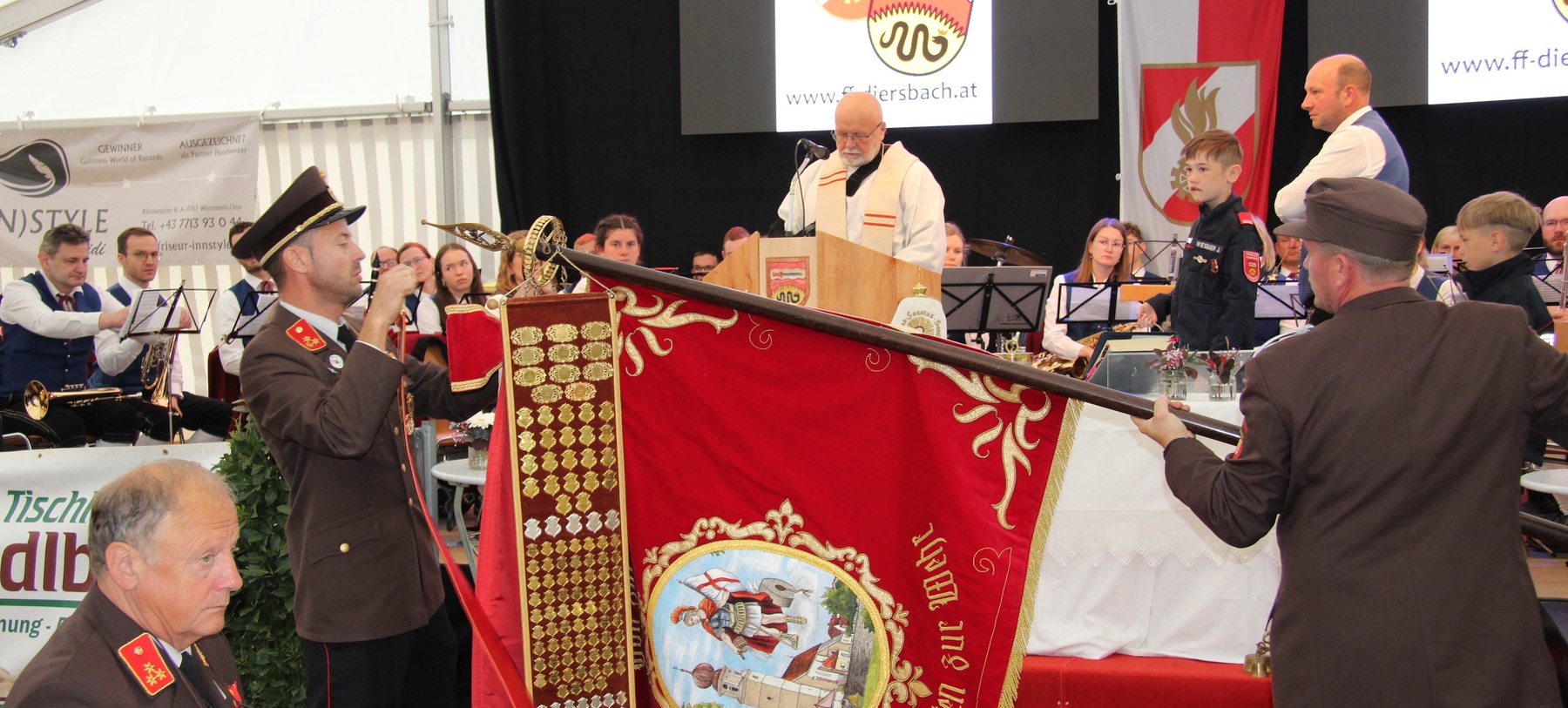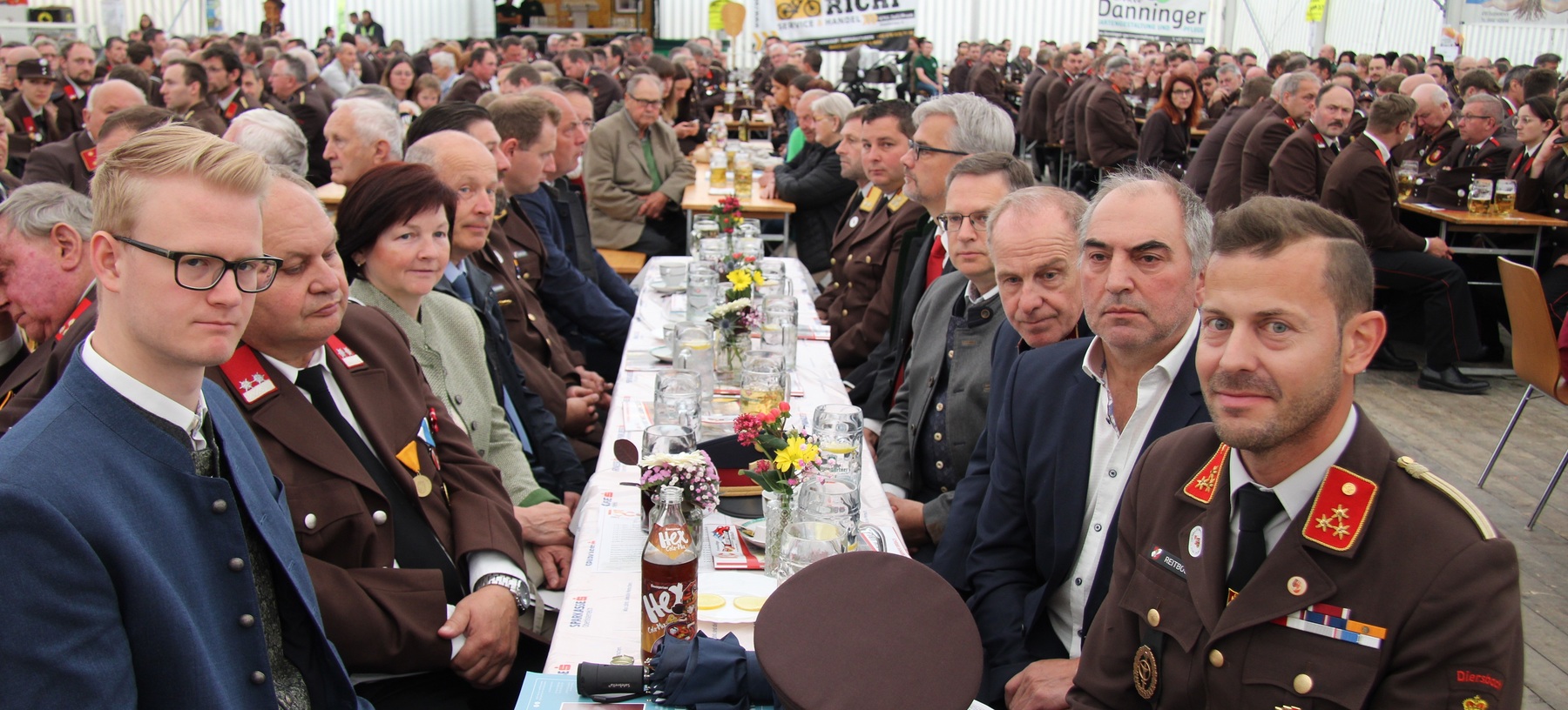 Die Feuerwehr Diersbach feiert 150 Jahre – Die Feuerwehrjugend Diersbach 40 Jahre. Das wird würdig gefeiert. Zahlreiche Gäste waren gekommen, um mit der Feuerwehr Diersbach ihr 150. Gründungsfest zur begehen. Kameraden aus den Nachbargemeinden, Mitglieder der Vereine auch aus den umliegenden Orten, Bürger von Diersbach: Das Festzelt war voll besetzt, als Kommandant sie zum Fest-, Gedenk- und Dankgottesdienst begrüßte. Ein Festgottesdienst, „weil wir stolz sind und feiern, dass es unsere Feuerwehr seit 150 Jahren gibt“. Ein Gedenkgottesdienst, weil man auch an die verstorbenen Kameraden und Vereinsmitglieder denken wolle. Und ein Dankgottesdienst, „weil wir einfach dankbar sind für das viele Gute, das uns in der Feuerwehr bisher widerfahren ist“ – Freundschaften, Kameradschaft, Zusammengehörigkeit sowie das Gefühl, etwas Sinnvolles geschafft zu haben. Und man danke für „viele Male gesundes Heimkommen zu unseren Familien nach Einsätzen und Übungen“.