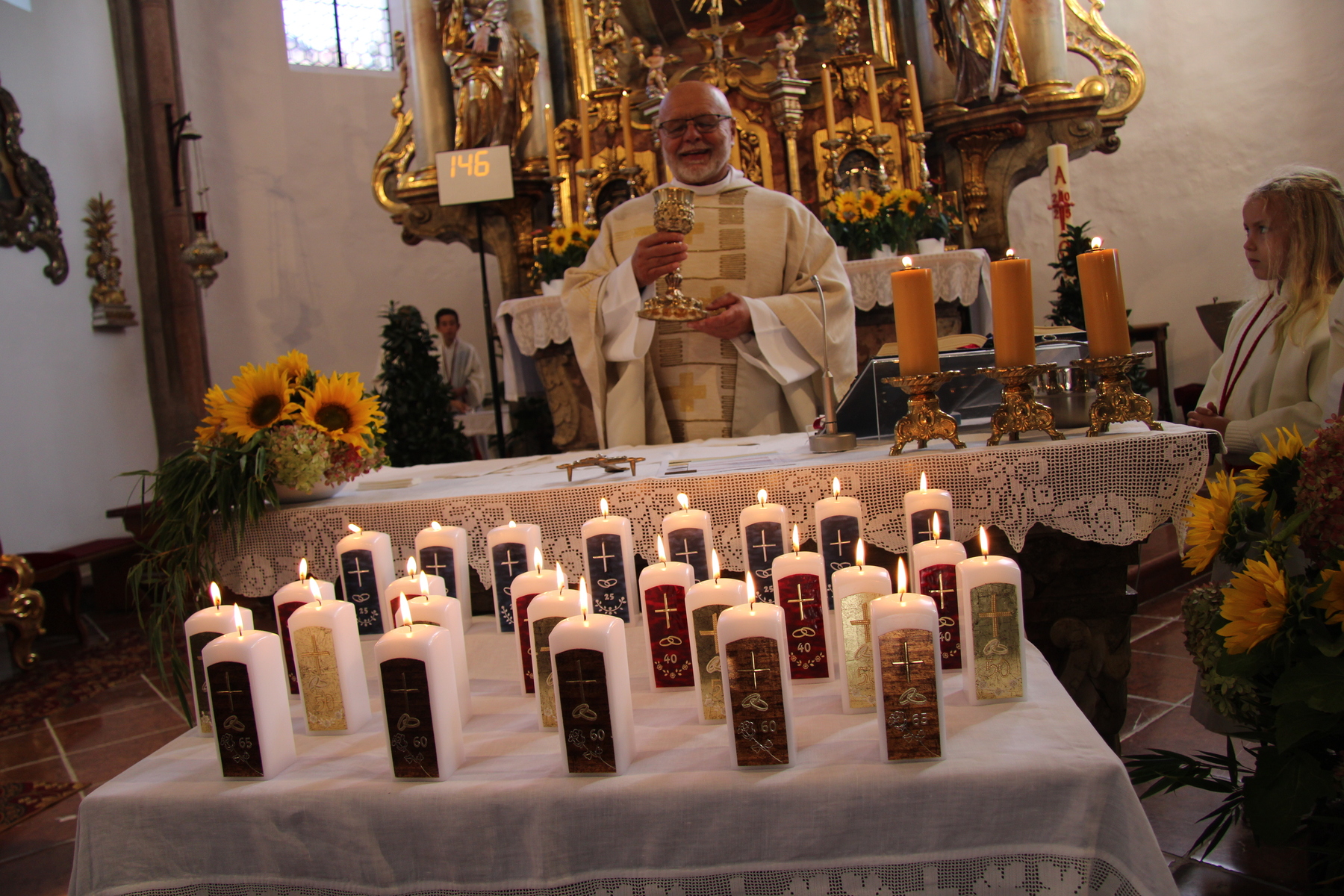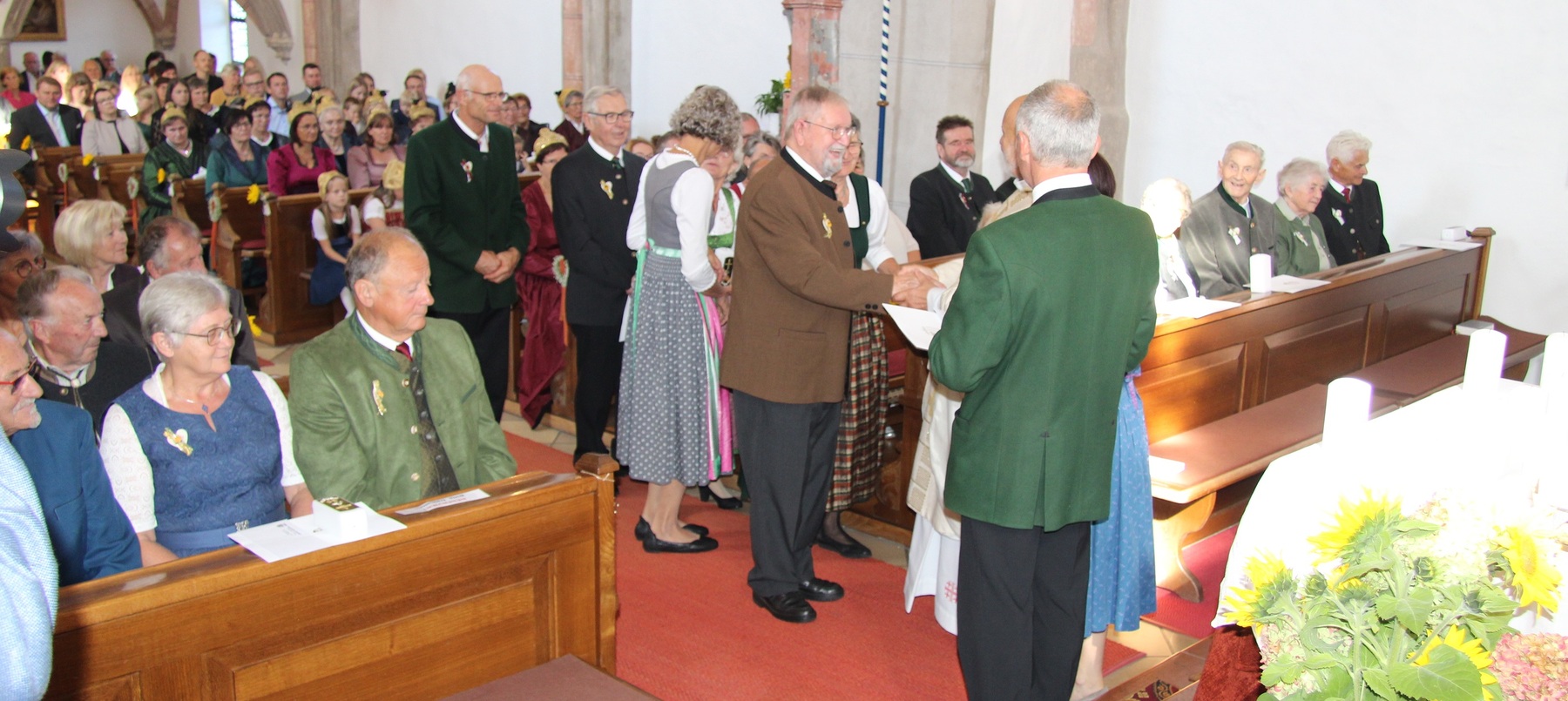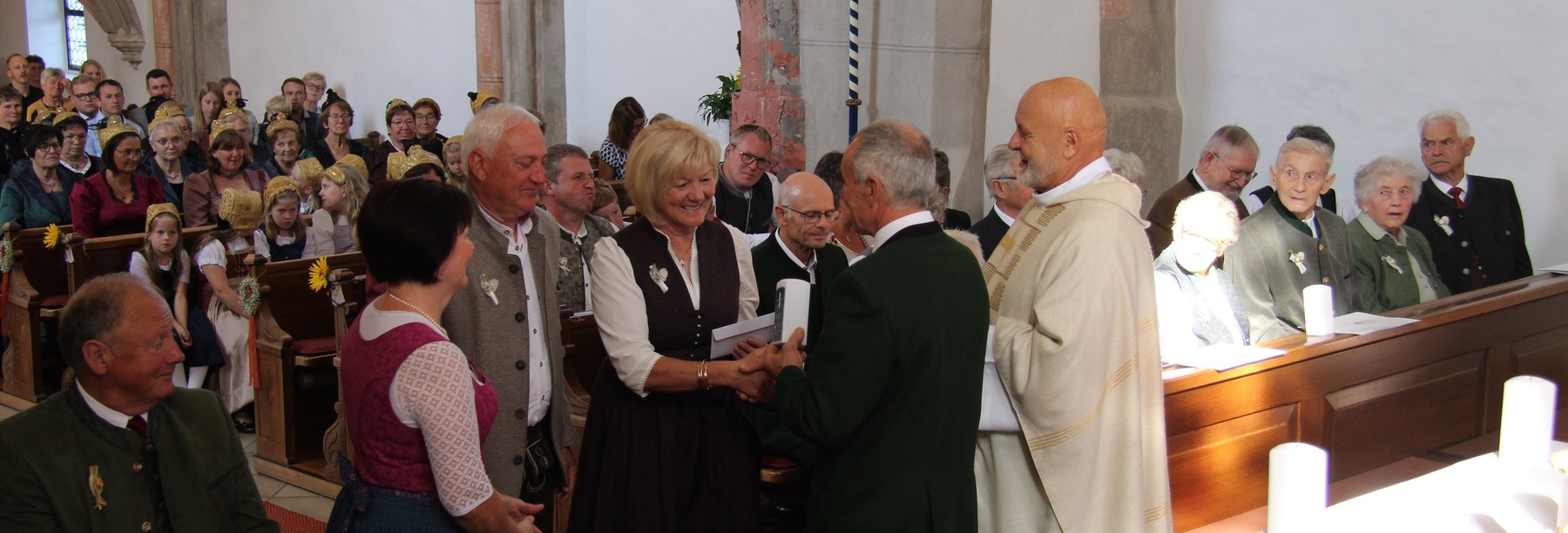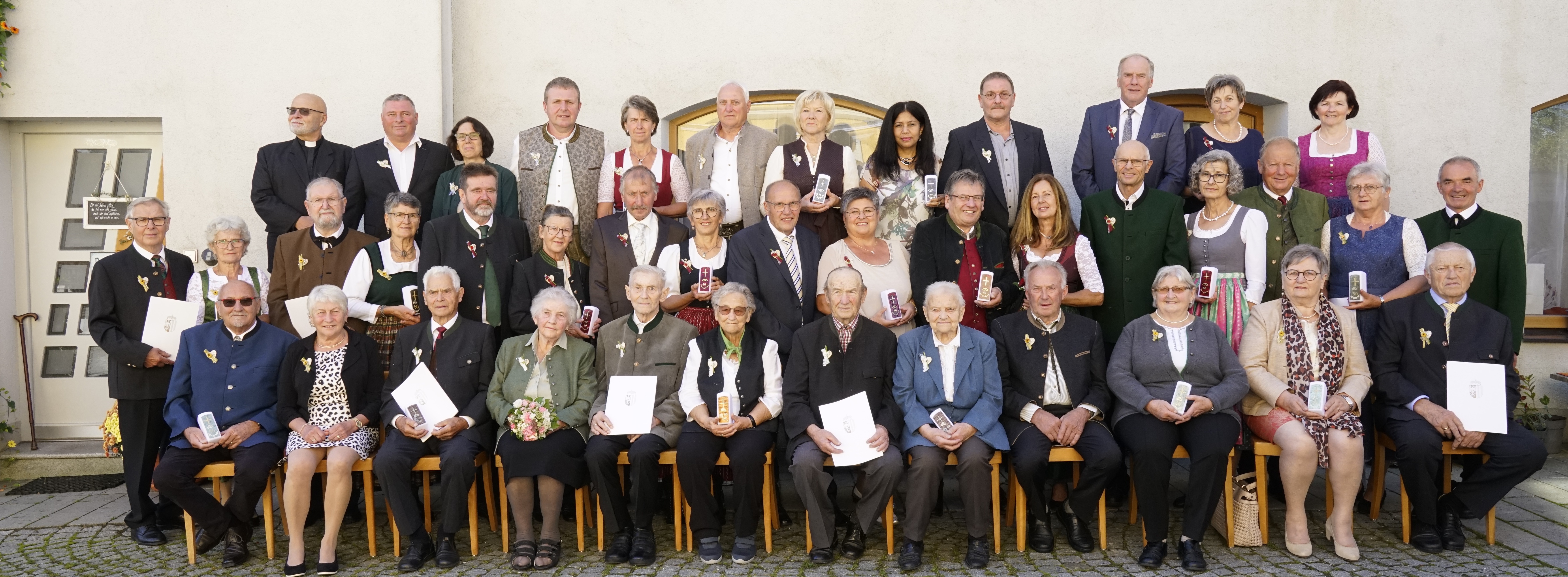Diersbach – Sie kommen aus Diersbach, um ihr Ehejubiläum zu feiern: 24 Paare und ihre Familien haben am 21. September gemeinsam mit Pfarrkurat Thaddäus Kret Gottesdienst in der Kirche gefeiert . Darunter waren viele Goldjubilare, aber auch Eheleute, die ihre diamante Hochzeit feiern.
