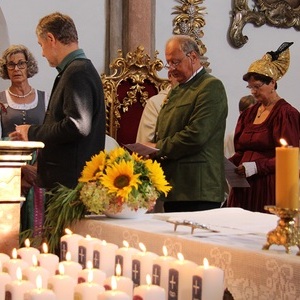 „Wenn sie sich als Ehepaare im Ehesakrament haben segnen und bestätigen lassen, dann ist das in der Tat etwas Großes, etwas Weitreichendes“, sagte der Priester in seiner Predigt. Die Eheleute hätten auf Gott vertraut und seien ihm gefolgt. „Ein Anlass, Ihnen von Herzen zu gratulieren und Ihnen danke zu sagen für Ihr Zeugnis, dass es möglich ist, diesen Weg, für den Sie sich einmal entschieden haben, gemeinsam zu gehen.“ Fest im Glauben zu stehen und an der Liebe festzuhalten, am einmal geschlossenen Ehebund, liege gar nicht so weit auseinander, sondern greife ineinander. „Die Ehe ist ein Abbild der Liebe, mit der Gott sich an uns, seine geliebten Geschöpfe, gebunden hat.“ Der Glaube sei „ein wunderbares Geschenk Gottes an uns. Unglaublich – ich glaube! Weil Gott uns dazu befähigt.“ So befähige der Glaube die Menschen, einander zugewandt zu sein – immer wieder von Gott selbst ermutigt.