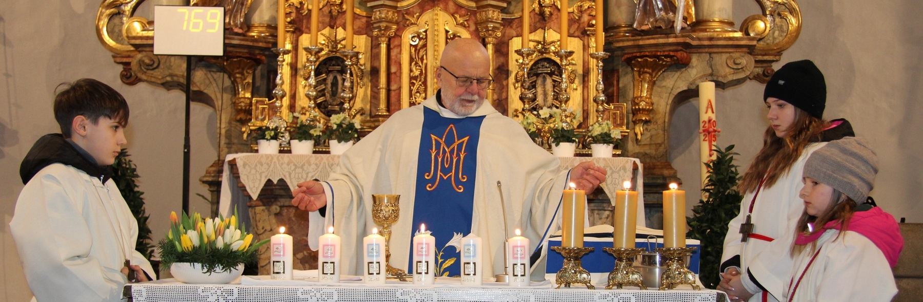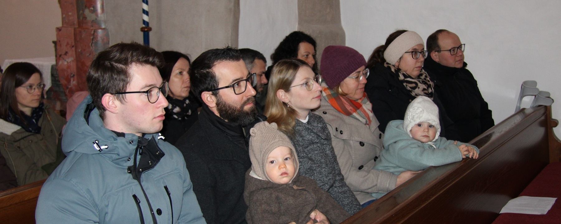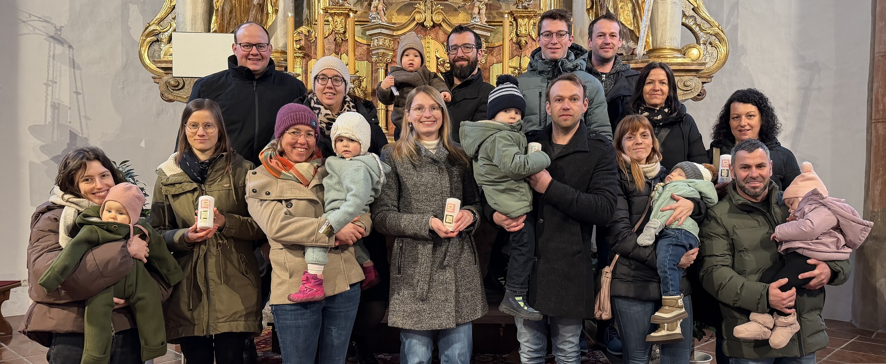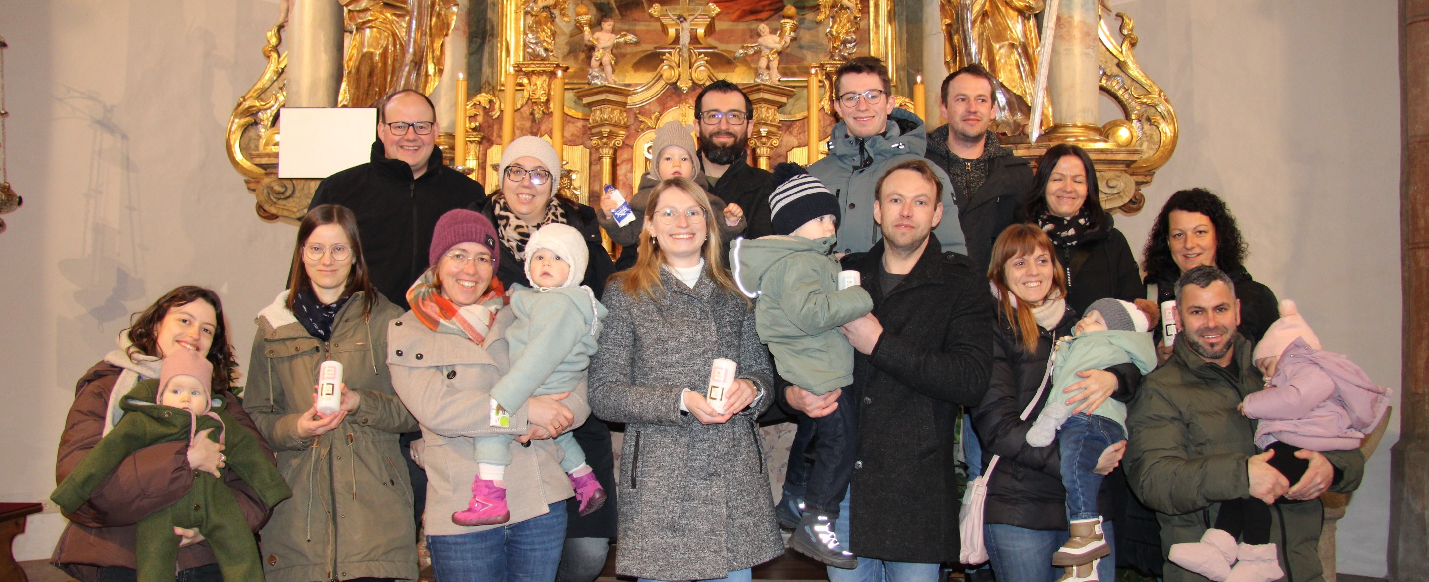 Die Segnung der Täuflinge des vergangenen Jahres nahm Pf. Thaddäus beim fröhlichen Gottesdienst am 1. Februar 2026 vor. Der Kirchenraum pulsierte mit dem Geplapper,oder Quengeln der jüngsten Pfarrmitglieder.