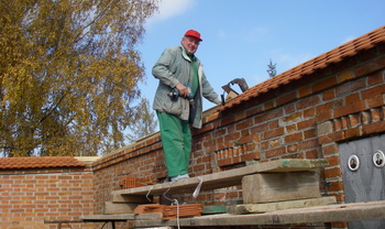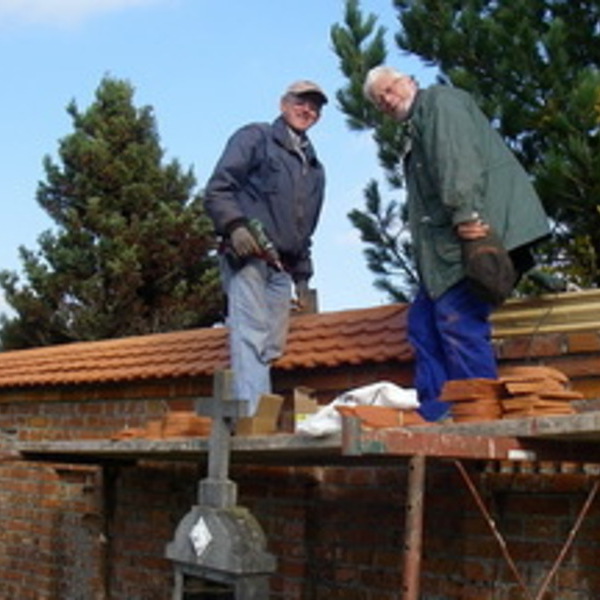 Bis jetzt sind 45 freiwillige Helfer !!! mit großer Begeisterung und Eifer am Werk gewesen und haben zum Gelingen der Neueindeckung der Friedhofsmauer beigetragen.