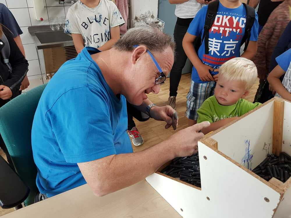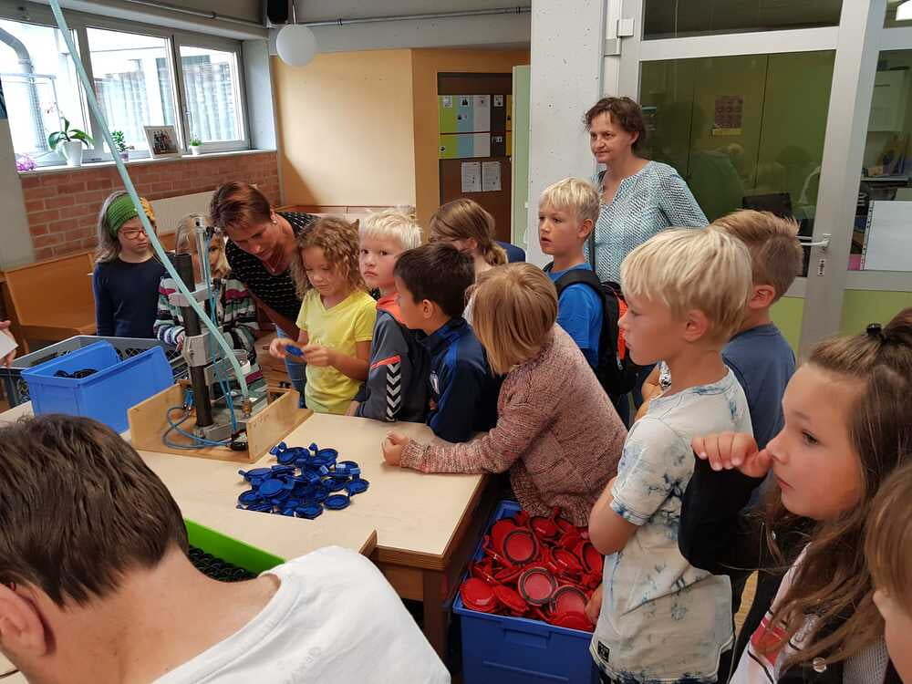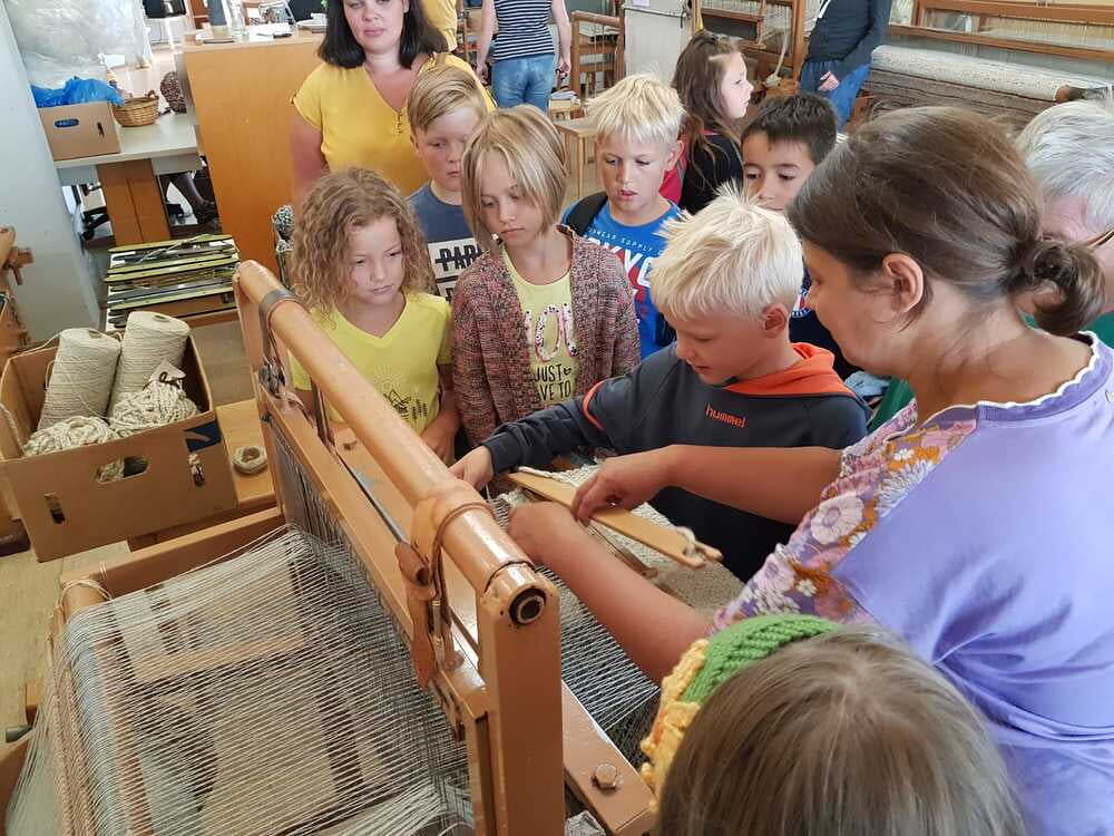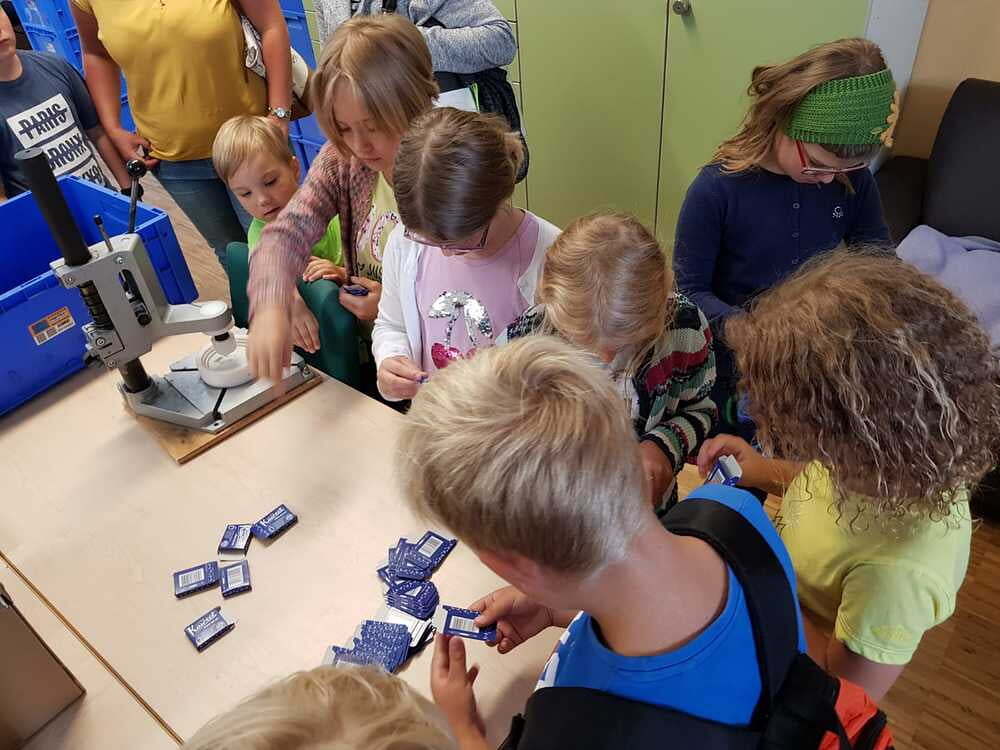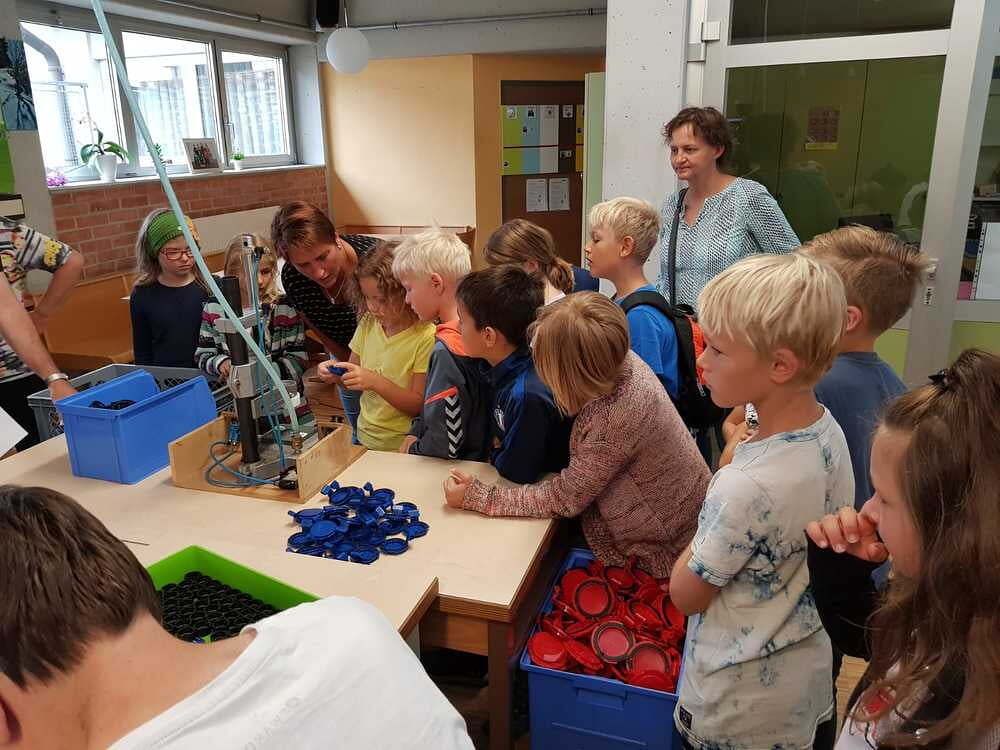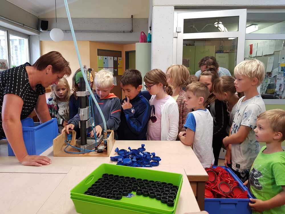 Dort wurden wir sehr freundlich empfangen und uns wurde vom Wohnen und Arbeiten in St. Pius berichtet. Ein junger Mann, namens Bibi führte uns nach den vielen Informationen der Hausleitung durch die Wohnanlage und Werkstätte. Da wurde es sodann richtig interessant für uns. Wir durften den Menschen mit Beeinträchtigungen nicht nur zuschauen, sondern auch selber Hand anlegen. So versuchten wir an einem Teppich mitzuarbeiten. Dazu braucht man unheimlich viel Kraft und Ausdauer. Wir haben Dichtungsgummis in Steckdosen eingedrückt und festgestellt, dass viel Konzentration notwendig ist, um nichts verkehrt zu machen. Sehr interessant war auch, dass unsere Tintenpatronen, die wir in der Schule verwenden, zum Teil auch in St. Pius eingepackt werden.