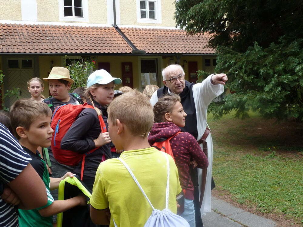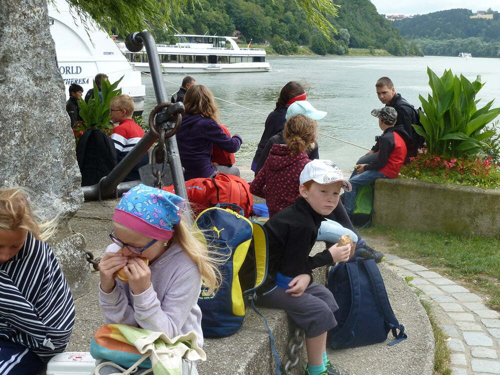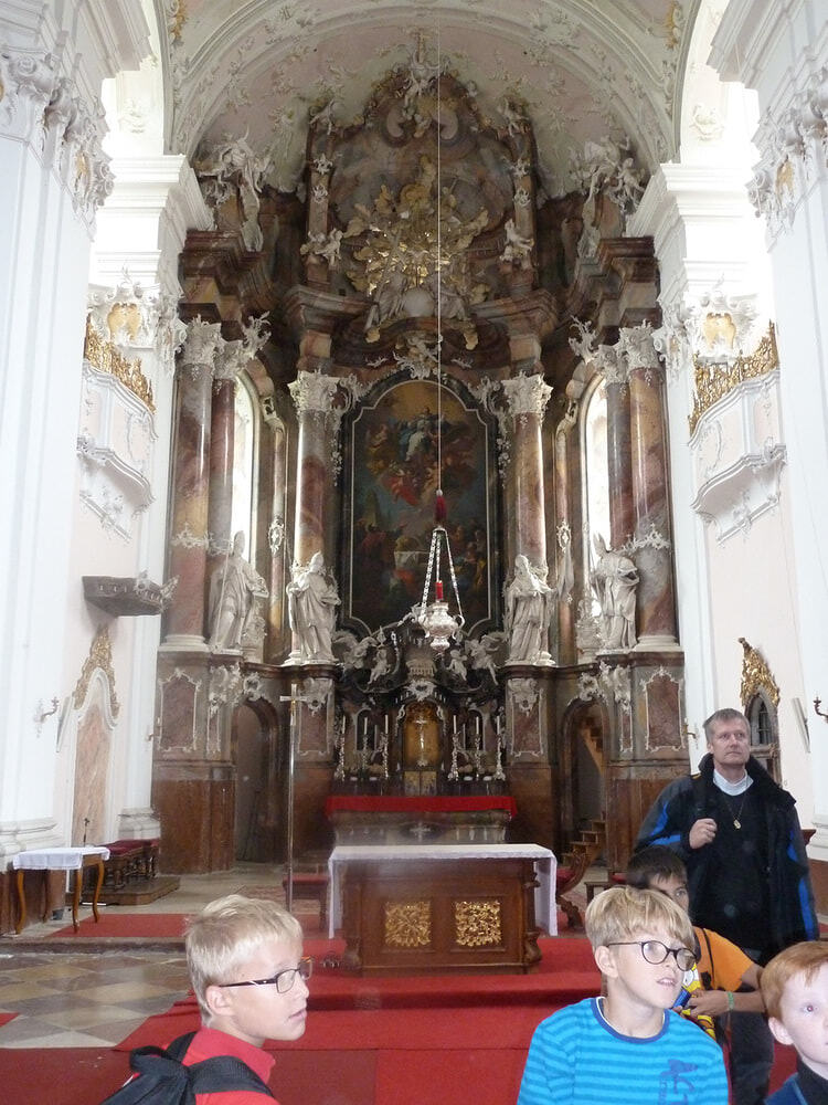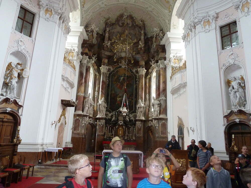 Für 17 Minis ging es am frühen Samstagvormittag mit dem Zug Richtung Passau. Dort angekommen ging es zu Fuß durch die schöne Altstadt zum Dom St. Stephan. Pfarrer Karl Mittendorfer erklärte den neugierigen Kindern im Dominneren die frühe Geschichte von Passau und nannte uns einige interssante Daten zum Dom. Um 10 Uhr konnten wir einen Teil der Messe mitfeiern, diese wurde anlässlich der Feier "50 Jahre Referat Kirchenmusik" durch den Bischof von Passau Dr. Stefan Oster SDB gehalten. Trotz seiner Eile konnten wir dankenswerterweise nach der Messe noch ein Foto mit ihm ergattern. Danach ging es weiter zur Schiffanlegestelle an der Donau, denn weiter ging es nun per Schiff nach Engelhartszell. Dort gestärkt angekommen besuchten wir die Ausstellung "Wassererlebnis Mini-Donau", ein kleiner Freizeit-Naturpark mit Sinnesgarten. Am Nachmittag wurden wir von den Trappistenmönchen des Stiftes Engelszell herzlichst empfangen. Superior ad nutum Pater Hubert Bony und Prior Pater Marianus Hauseder lehrten uns die Vergangenheit des Stiftes und führten uns durch einige Räume. In der Stiftskirche beantworteten sie uns auch einige Fragen zu den prunkvollen Gemälden und des Rokoko Stils, bevor es runter in die Gruft ging. Bevor es mit dem Bus wieder nach Hause ging feierte Pfarrer Karl Mittendorfer mit uns eine Abschlussmesse in der Stiftskirche.