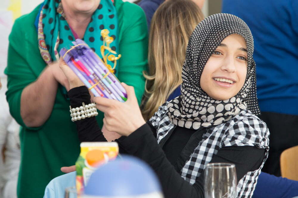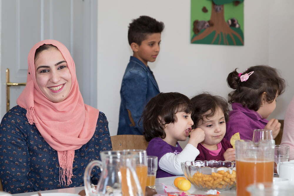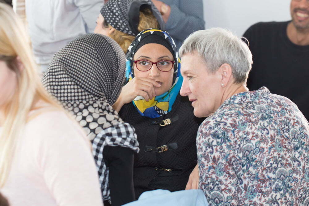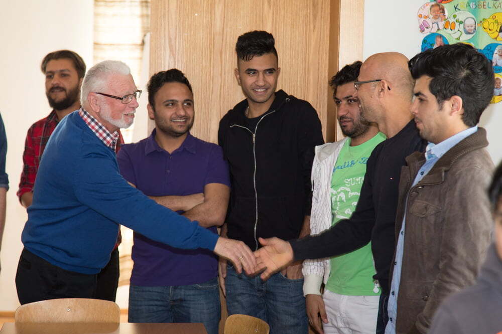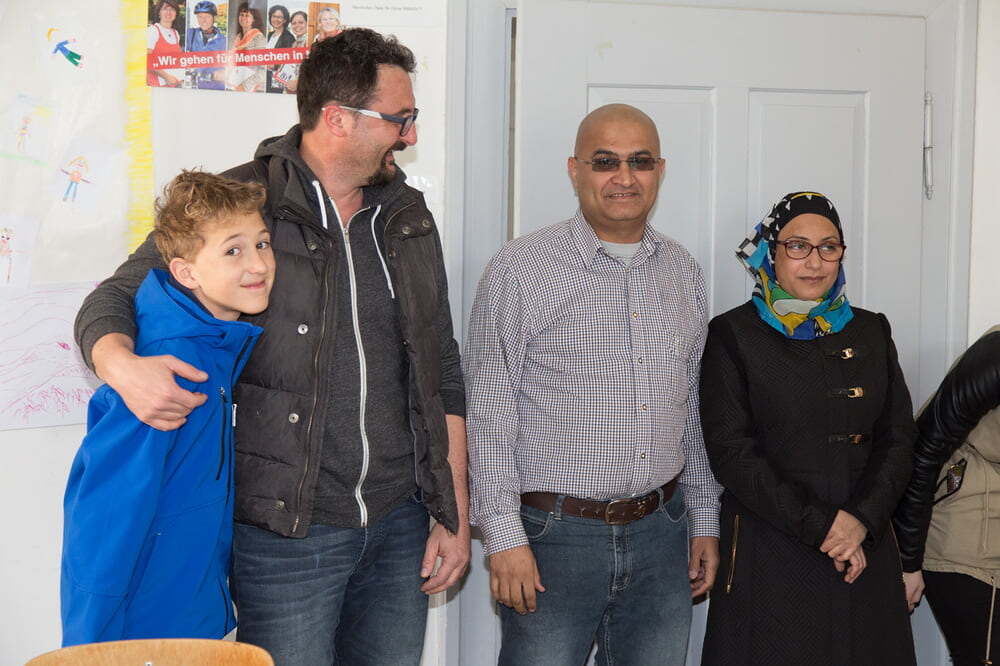 Der Nachmittag gestaltete sich sehr lebhaft, waren doch beinahe alle Flüchtlinge, die Familien mit ihren Kindern aber auch die Einzelpersonen, gekommen. Mir hat gefallen, dass immer wieder ein Wechsel der Gesprächspartner stattgefunden hat und man daher mehrere Personen kennenlernen konnte. In der Unterhaltung kam durch, dass die Iraker sich wohl fühlen bei uns. Wie aus den Fotos ersichtlich ist, ging es richtig „rund“. Es war eine offene, gesellige Atmosphäre und ich hatte den Eindruck, dass alle sehr herzlich zueinander waren. Außerdem ist mir aufgefallen, dass Mithilfe für die Gäste selbstverständlich war. Wie beim Aufstellen der Tische so haben auch die Helfer im Nu vor dem Heimgehen alles weggeräumt und sauber gemacht.