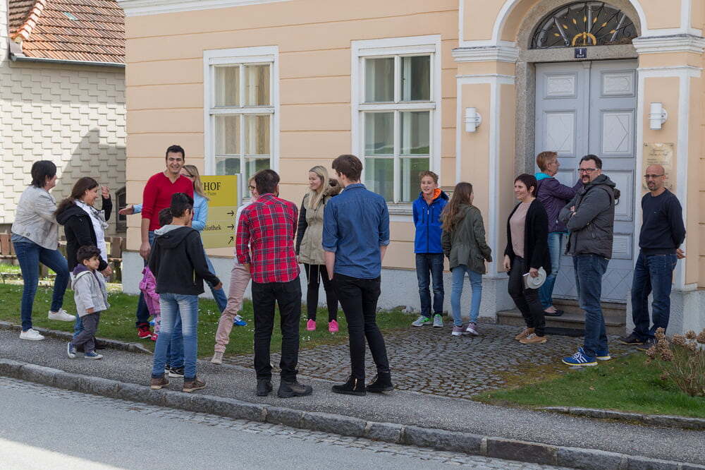 Unter dem Motto „Begegnungscafe“ trafen sich am Samstag, den 2. April nachmittags die in Dorf wohnenden Asylwerber mit Dorfern im Pfarrsaal. Es sollte beiden Seiten die Möglichkeit geboten werden, sich gegenseitig näher zu kommen. Dank der vielen freiwilligen Deutschlehrer und –lehrerinnen haben die Asylanten bereits so gut unsere Sprache erlernt, dass eine Unterhaltung möglich ist. Wenn man bedenkt, wie verschieden arabisch und deutsch in Wort und Schrift ist, so ist das in den paar Monaten eine großartige Leistung.
