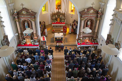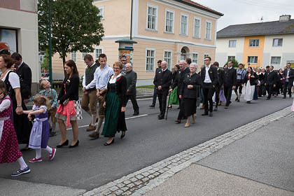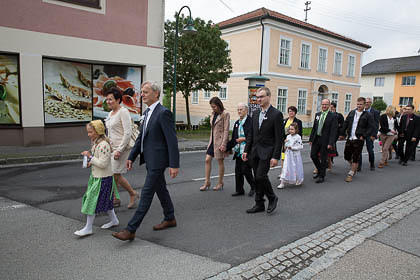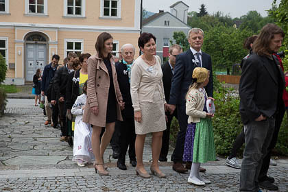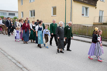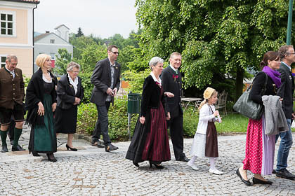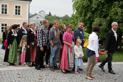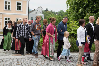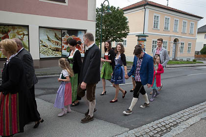 Sehr viele Hochzeitsgäste und feierten mit Musik und Festzug den wunderbaren Gottesdienst und den Hochzeitszug zum Gasthaus mit.