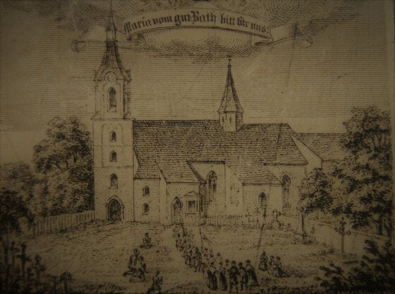 Er baute auf das Kirchlein MARIA VOM GUTEN RAT.