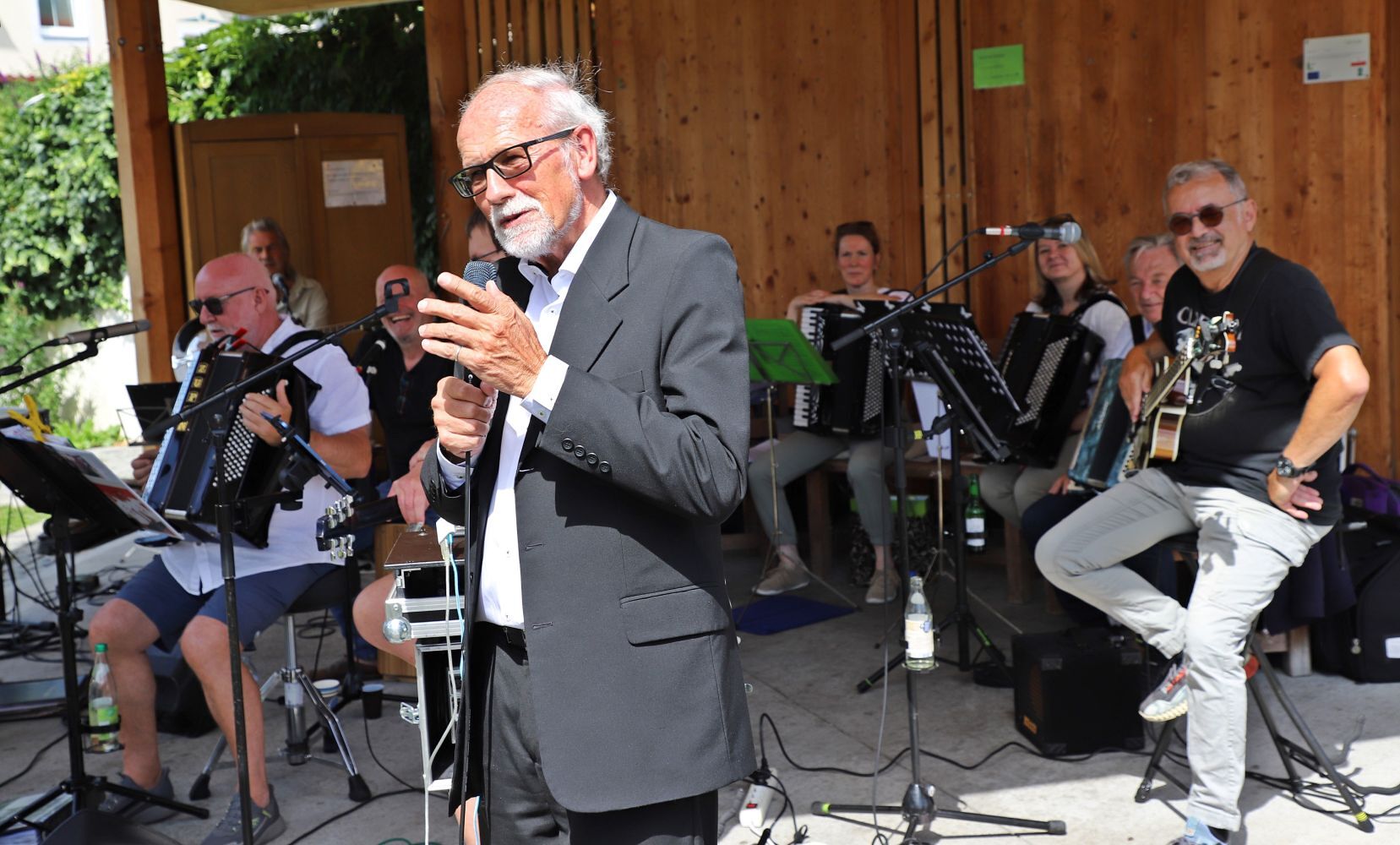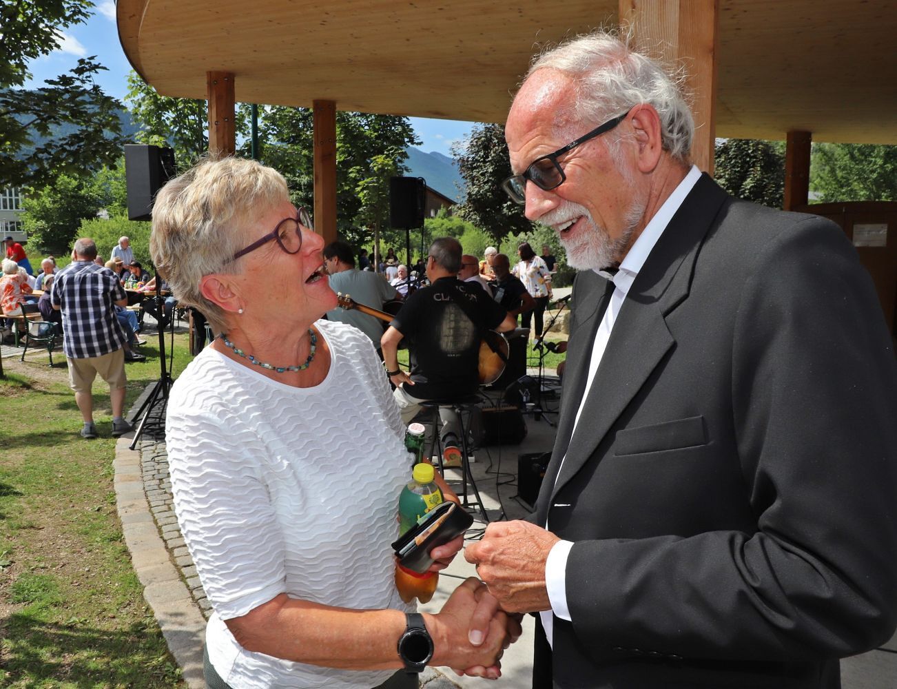 Beim Trüföbankerl am Traunufer kam es nach dem Gottesdienst zum gemütlichen Beisammensein. Peter Höller gab mit seiner Band "Birndi`s Akkordarbeiter" ein Benefizkonzert. Langjährige Freunde, Unterstützer und Wegbegleiter nutzen die entspannte Atmoshäre zu einem Gespräch mit dem Missionar. Es war ein Sonntag Vormittag der Erinnerungen und der herzlichen Begegnungen. Franz Windschhofer hat in Ebensee Spuren hinterlassen. Ebensee ist seinem früheren Kaplan auch nach knapp 50 Jahren noch immer eng verbunden.