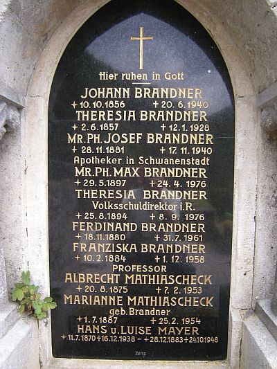 Im Jahr 1928 mit 72 Jahren trat Brandner nach 44 Jahren als Chorleiter von seinem Amt zurück. Es kamen neue Zeiten, ein junger Pfarrer, Ferdinand Giesriegl, mit neuen musikalischen Ambitionen folgte ihm nach. Am 12. Jänner 1928 starb Brandners Frau Theresia, möglicherweise war auch das eine Grund für seinen Rücktritt. Er selbst verstarb am 20. Juni 1940 im 84 Lebensjahr, sein Grab und das seiner Familie ist auf dem Ortsfriedhof von Ebensee.