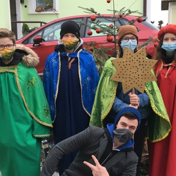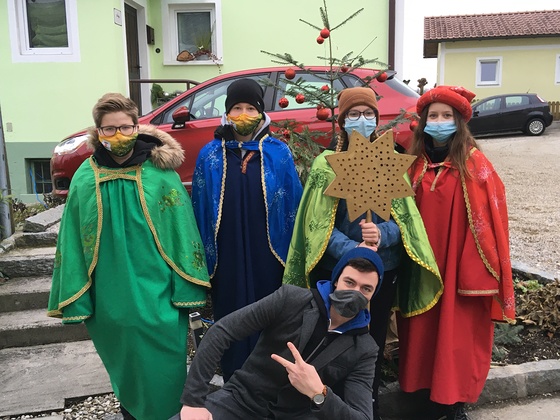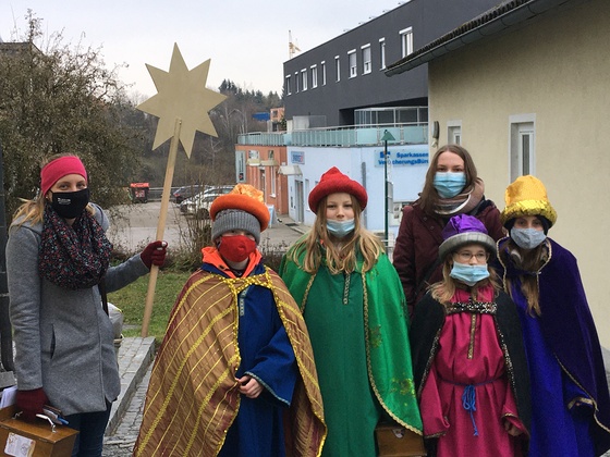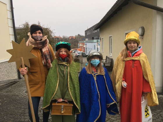 Mit Mundnasenschutz und auf genügend Abstand achtend wurden die Weihnachtsbotschaft und der Segen für das Jahr 2021 überbracht und dabei um Spenden für die Ärmsten der Welt gesammelt.