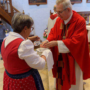 In den stimmungsvollen Liedern und Gebeten des Firmgottesdienstes kann man Gottes Geist spüren. Abt Ambros sagt ihn dann jedem Firmling zu, indem er mit Chrisam ein Kreuz auf die Stirn zeichnet und dabei spricht: „Sei besiegelt durch die Gabe Gottes, den Hl. Geist“. Die Firmung bedeutet „Stärkung“ für das Leben. Der Pate/ die Patin steht dabei hinter dem Firmling. Dass die Paten auch in Zukunft hinter den Firmlingen stehen, wenn sie gebraucht werden und dass die Firmlinge ihn immer wieder spüren, diesen Heiligen Geist, das wünschen wir ihnen für ihr Leben.