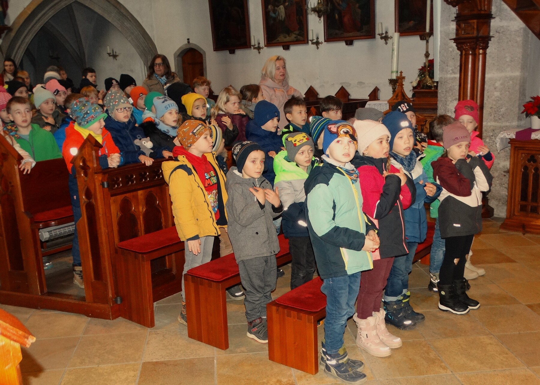 Die Volksschule und die Mittelschule haben ihre vorweihnachtlichen Gottesdienste gefeiert, am 4. Adventsonntag hat die Jungmusi des MVE unter der Leitung von Martin Bruckner die Sonntagsmesse gestaltet. Die kfb hat zum zweiten Mal zum gemeinsamen Liedersingen eingeladen und viele sind gekommen und haben die adventlichen und weihnachtlichen Lieder mitgesungen.