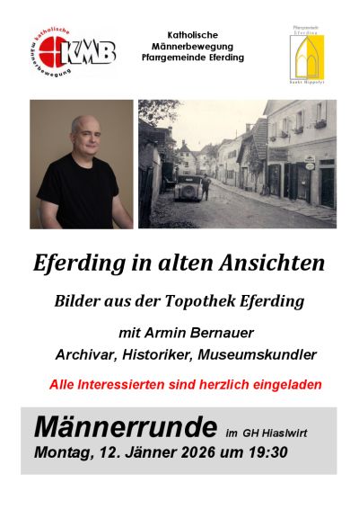 Die Katholische Männerbewegung der Pfarrgemeinde Eferding lädt herzlich ein: Bilder aus der Topothek mit Armin Bernauer