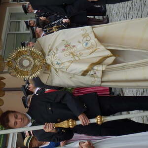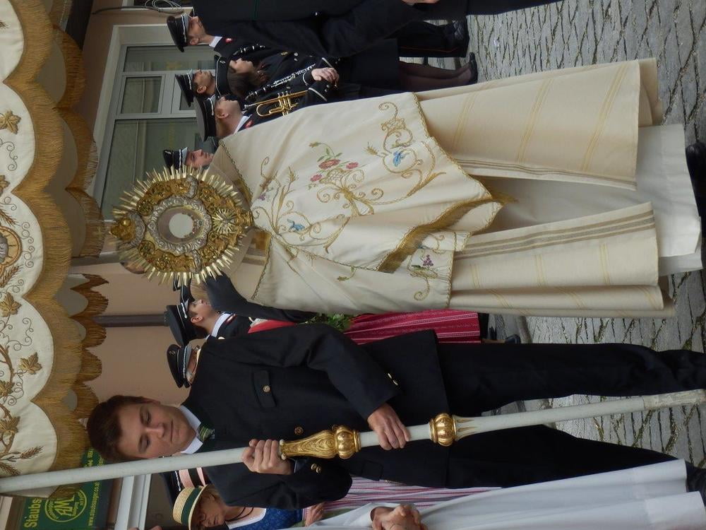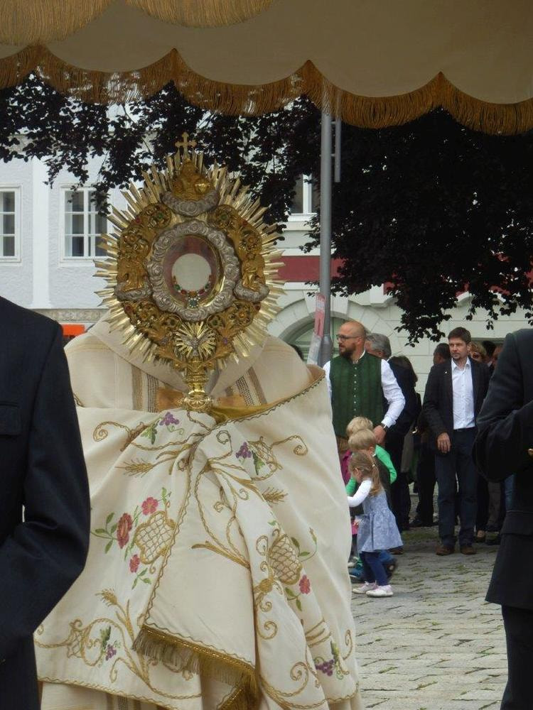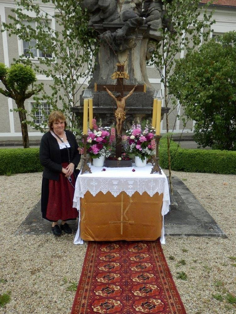 Der Fachausschuss Caritas der Pfarre Eferding ermöglichte heuer zum ersten Mal Bewohnerinnen und Bewohnern des Seniorenheimes Eferding, an der Fronleichnamsprozession teilzunehmen, bei der Fronleichnamsprozession "mitzugehen".