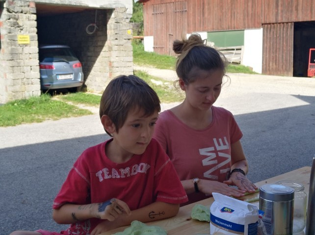 Im Stadel gibt es eine Menge Materialien, mit denen die Kinder zu KünstlerInnen und ErfinderInnen werden können.
