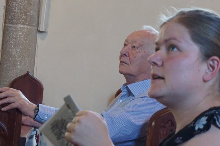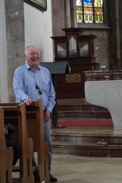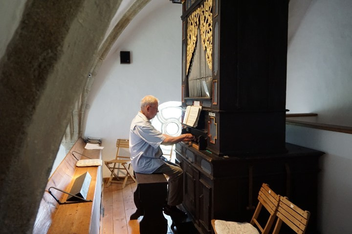 Und unsere Gruppe nutzt die Kirche auch zu einer kurzen Andacht mit Orgelbegleitung von Hans Raab.