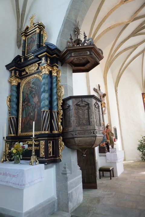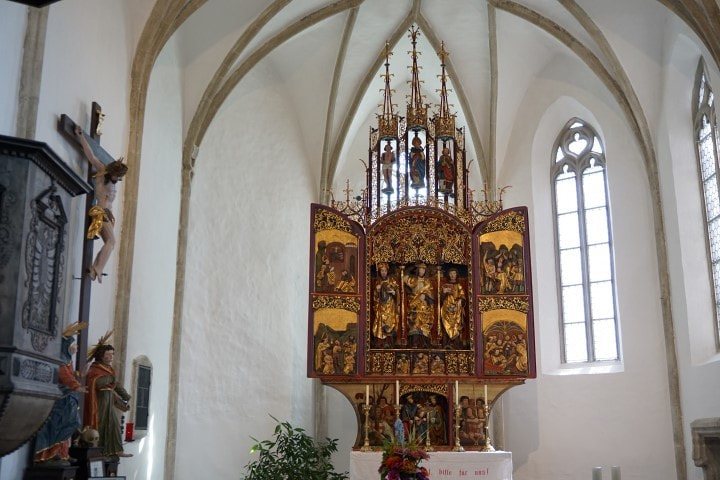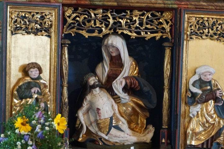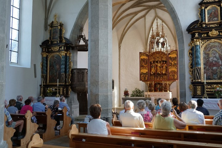 Weil sich der kleine Ort in der Barockzeit keine „Modernisierung“ der Kirche leisten konnte, blieben die drei wunderschönen gotischen Altäre bis heute erhalten.