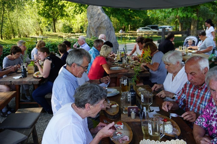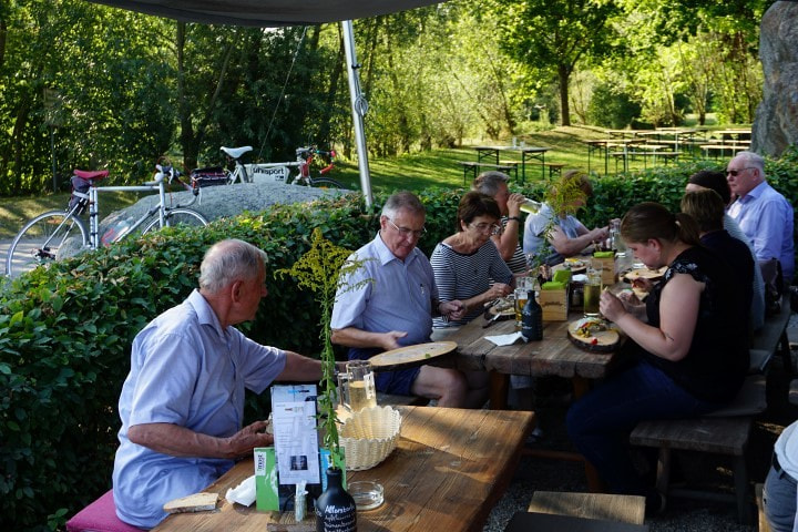 Freundliche und flotte Bedienung, gebratene Forellen und andere Speisen, ein kühles Freistädter Bier und nette Tischgespräche geben Kraft für den Nachmittag.