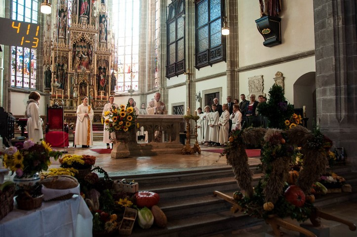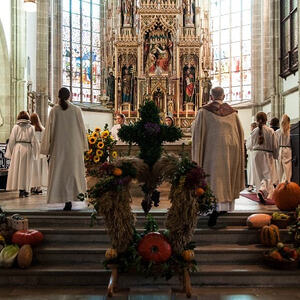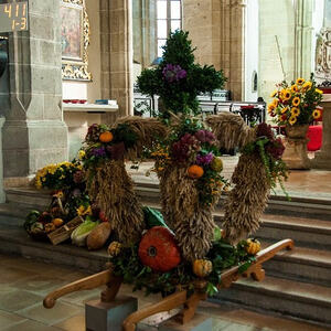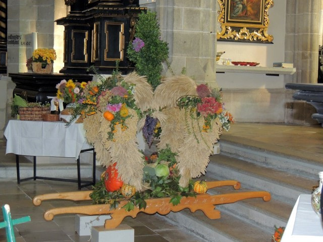 Das Erntedankopfer wird heuer als Kostenbeitrag für das Denkmal der „still geborenen Kinder“ und für die Sanierung des Südportals der Stadtpfarrkirche verwendet.