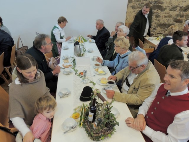 Im Anschluss an den Gottesdienst bewirteten die Frauen der Goldhaubengruppe im Pfarrzentrum die Feiergemeinde mit hausgemachten Mehlspeisen und stärkenden Getränken.